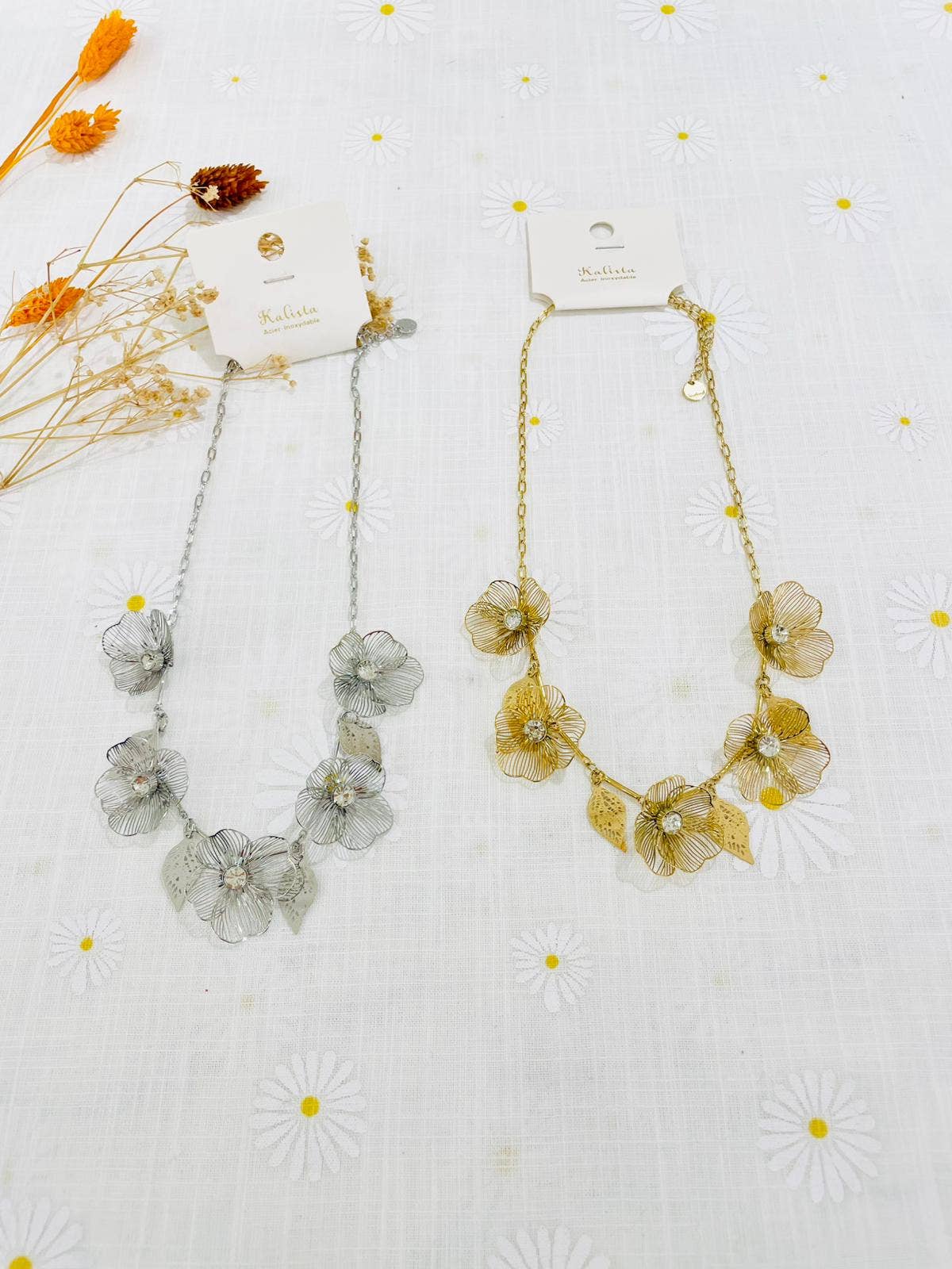 Collar colgante flor 70 cm, disponible en 3 colores Cierre y anillos: 100% Acero Inoxidable - Ajustable - Hipoalergénico - Resistente al agua, no se oscurece Ref: 52086