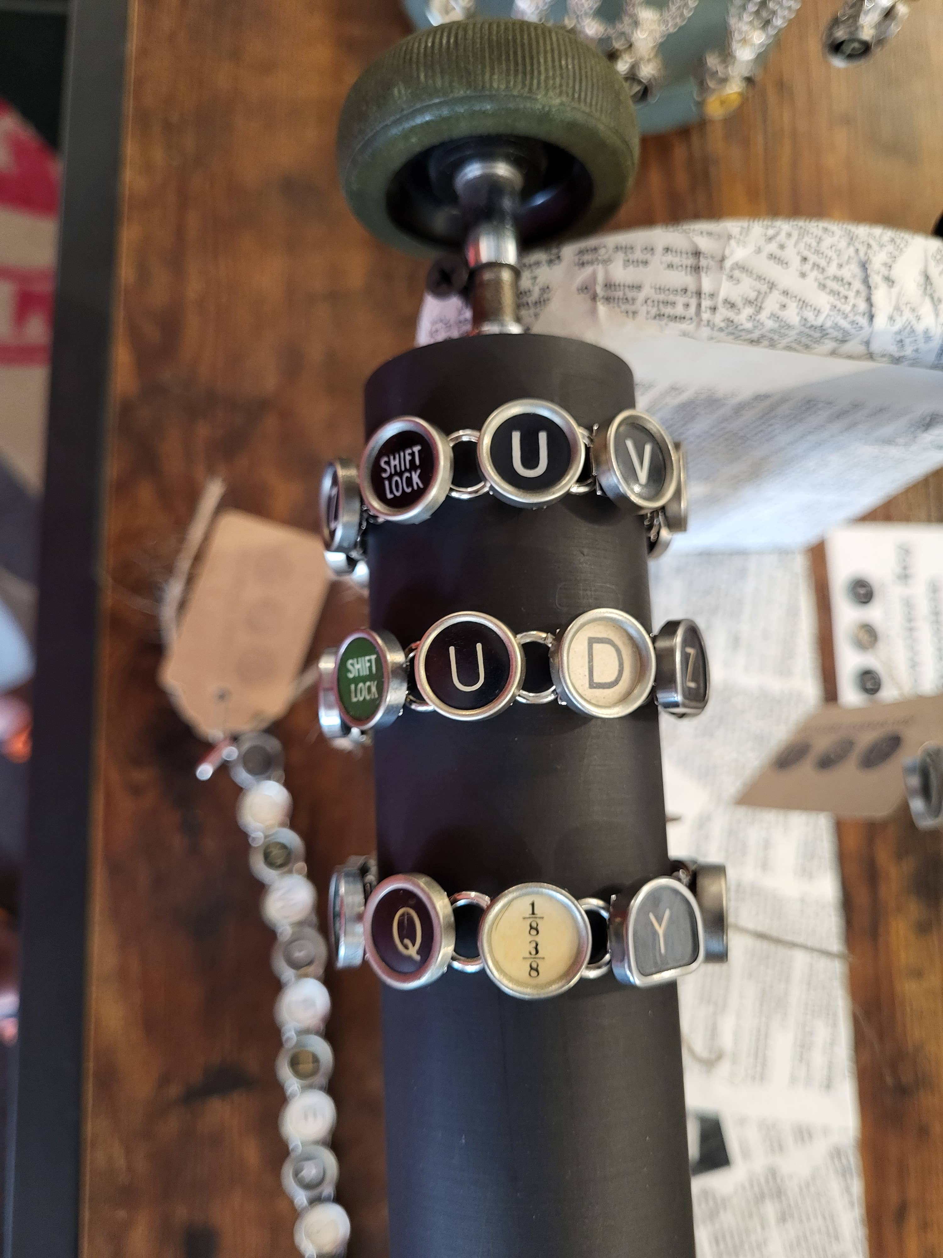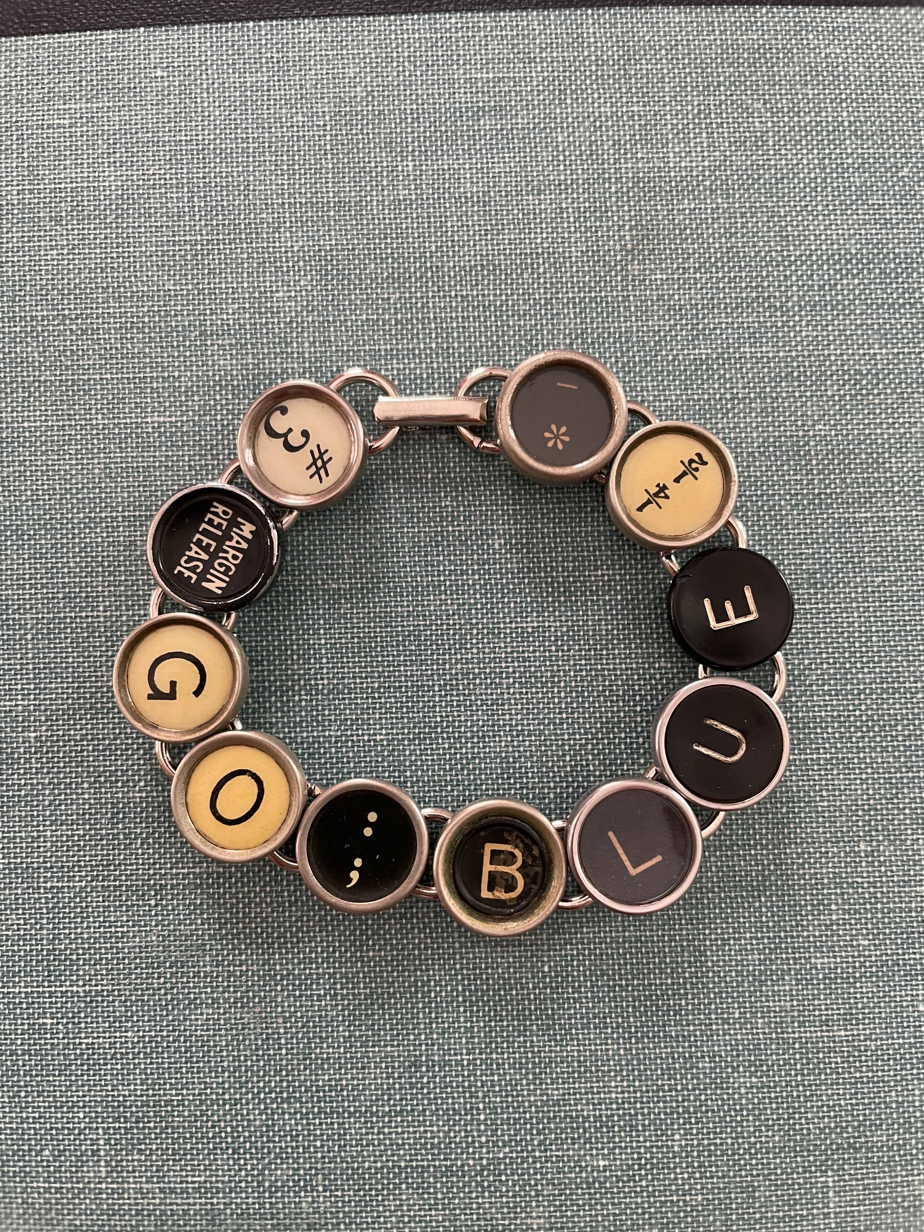 Una llave para máquina de escribir para añadir longitud a la pulsera.