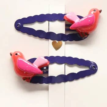 Dúo de clips para el cabello con flores de purpurina. Clip dorado de 4,9 cm tipo click clack. Estos clips no están destinados para niños menores de 36 meses. Evite que sean ingeridos por niños pequeños.