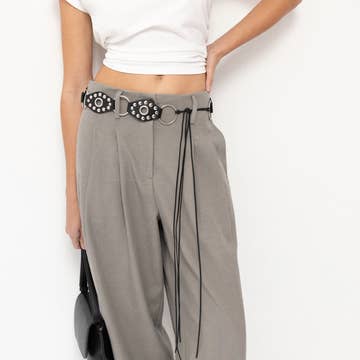Pantalones de pierna ancha con cintura alta fruncida y bolsillos VP81443