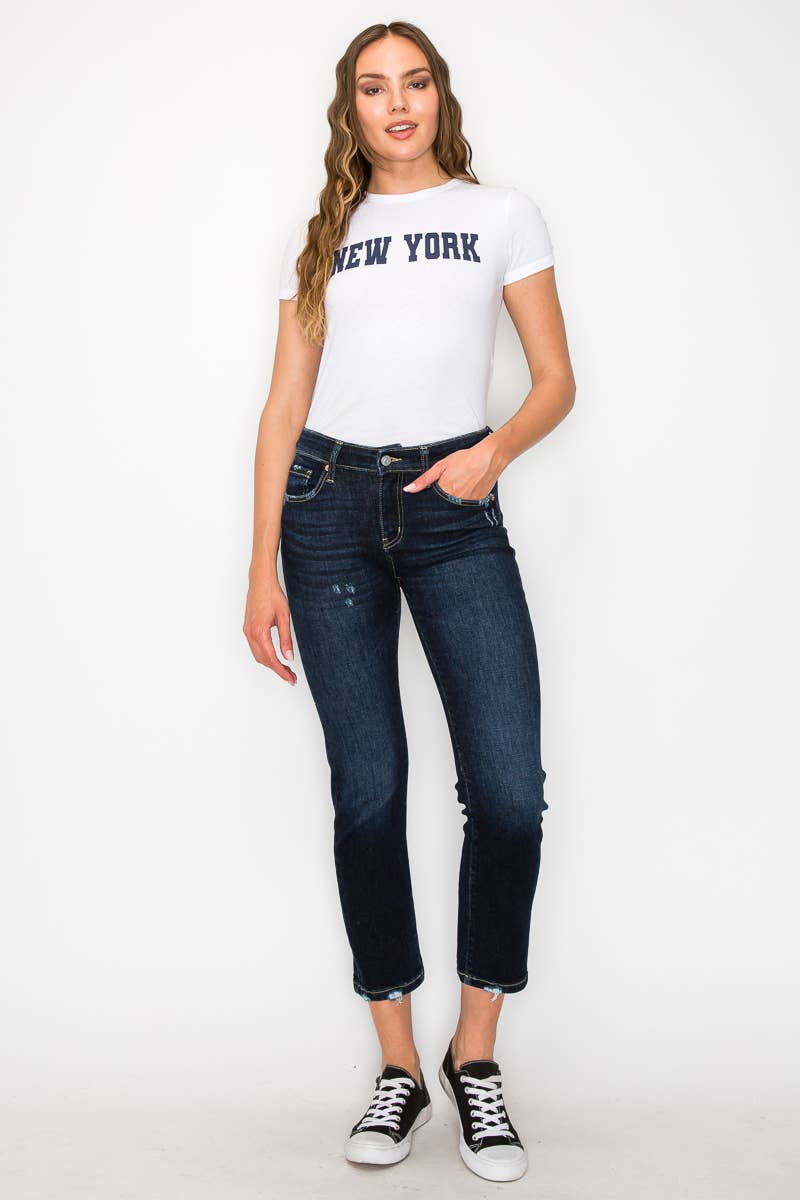 VAQUEROS AJUSTADOS RECTOS Y ELÁSTICOS DE TALLE MEDIO CON DOBLADILLO DESHILACHADO AL POR MAYOR
