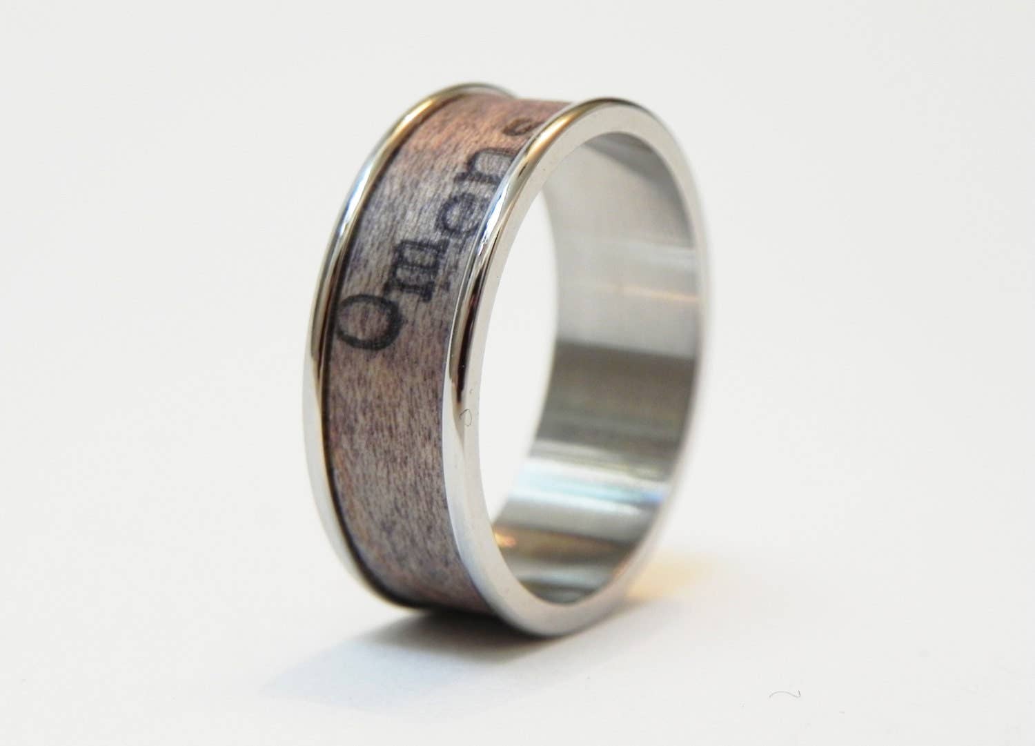 Fabricado con madera de caoba auténtica que ha sido teñida y cortada a mano para que se ajuste perfectamente a los anillos. Los anillos están hechos de acero inoxidable de grado 316 de alta calidad. Están disponibles las tallas de 3 a 13. Este anillo presenta la poesía escrita a máquina de escribir «One» escrita a mano en una máquina de escribir Remington vintage alrededor de la banda de madera del anillo. La veta exacta de la madera y la ubicación de la tipografía pueden variar pieza por pieza. ¡Cada uno se hace único y uno a la vez! Estaré encantado de personalizar este artículo para ti, con nombres, citas, dichos o inspiraciones. Dependiendo del tamaño del anillo, caben alrededor de 25 caracteres. Estos anillos están sellados y son seguros para el agua. Puedes ducharte con ellos, lavar platos, saltar al océano, ¡VIVIR A LO GRANDE! Hacemos regalos para personas a las que les gusta la aventura, Echa un vistazo a la tienda para ver más ideas de regalos: www.etsy.com/shop/ResoluteStar Lo mejor, - Hora: Resolute Star