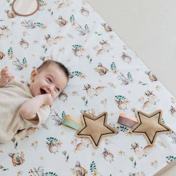 El tapete que se integra y destaca a la vez. El tapete Haven es un tapete de juego de diseño moderno, pensado para hogares que buscan suavidad y estilo en igual medida. Acolchonado, fácil de limpiar y modular, ofrece a tu hijo un espacio seguro para jugar mientras mantiene el estilo de tu hogar. Fabricado con espuma especialmente formulada, es no tóxico, ultracómodo y contiene un aditivo natural que facilita su descomposición al final de su vida útil. Lo suficientemente duradero para uso diario y suave para las rodillas más pequeñas. Su diseño de losetas continuas te permite personalizar la forma y tamaño del área de juego. Sin espacios ni desperfectos — solo un rincón tranquilo y hermoso para la vida diaria. Sobre Mineral Mineral es un tono azul fresco con matices grises y verdes. Acerca de la colección: La colección Linear está inspirada en la arquitectura griega y romana, con un toque divertido que elevará tu espacio de juego. Guía de montaje