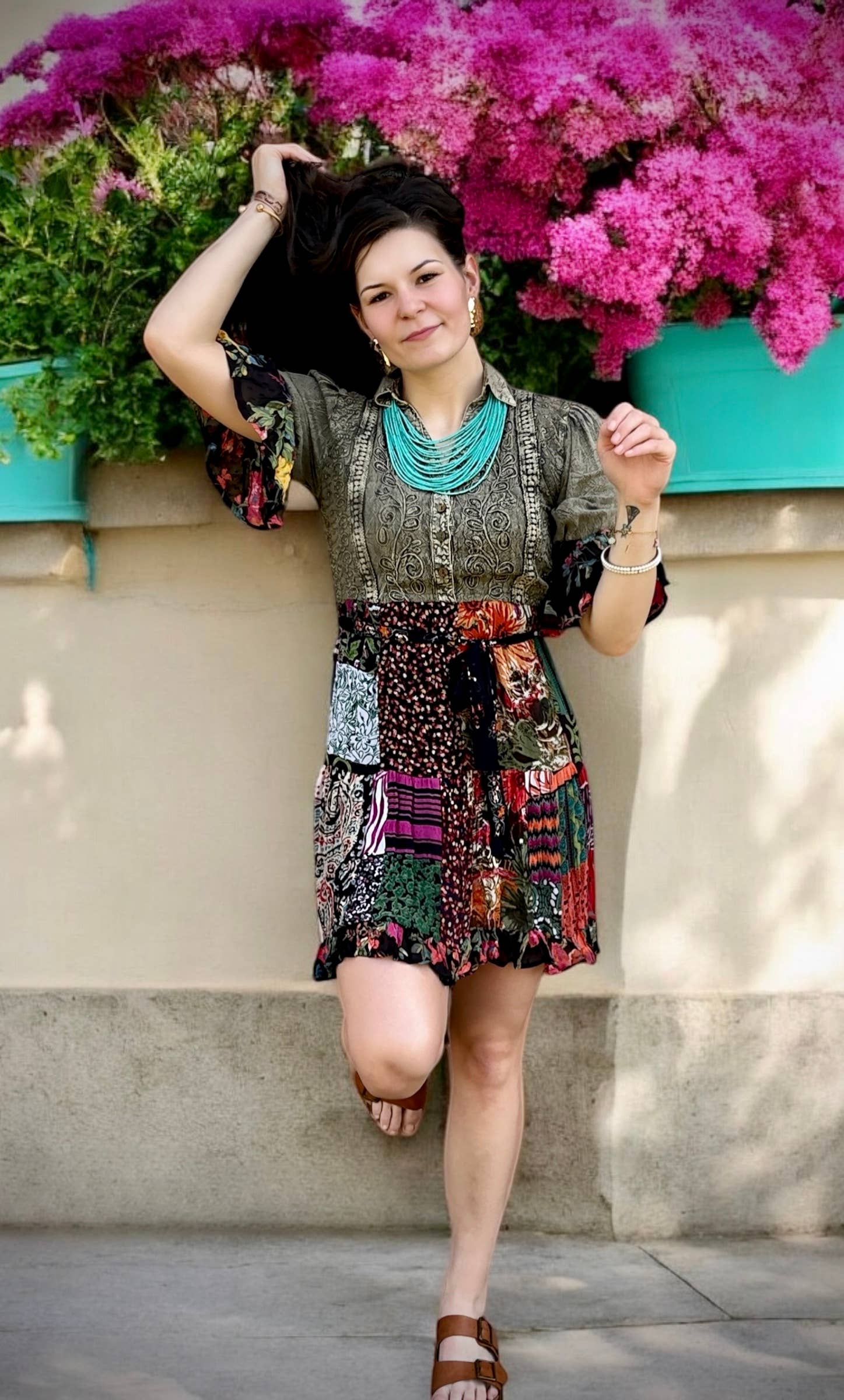 • Vestido Baby Doll Lavado a la Piedra de Fusión Vintage • El encanto retro se encuentra con el estilo contemporáneo • Parte superior lavada a la piedra para una sensación nostálgica • Intricado bordado y delicados detalles de encaje • Cinturón en la cintura para un ajuste personalizado • La falda inferior presenta un diseño de patchwork en capas en suaves tejidos de georgette • Estética juguetona y nostálgica • Construcción cuidadosamente forrada para mayor comodidad • Bolsillos convenientes para mayor practicidad • Ideal para fiestas en el jardín, festivales de música o ocasiones de inspiración bohemia Aviso: Debido a la naturaleza única del diseño de patchwork, cada producto será único.
