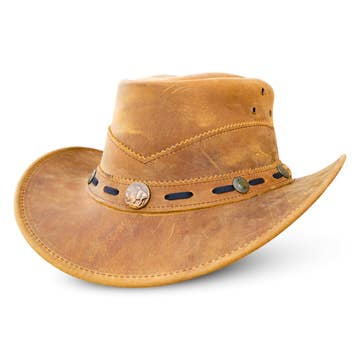 Sombrero Vaquero Outback de Cuero Occidental Moldeable HADZAM Marrón - 100% cuero de vaca genuino – duradero, de larga duración y de calidad premium - Ala moldeable - Correa de barbilla removible – proporciona comodidad y ajuste seguro - Diseño unisex – perfecto tanto para hombres como para mujeres Diseñados para individuos audaces, los sombreros HADZAM combinan el encanto occidental con la moda moderna. Hecho de cuero de vaca premium, este duradero sombrero vaquero outback ofrece versatilidad para diversas ocasiones. El ala moldeable te permite ajustarlo a tu estilo, ya sea que estés adoptando una vibra clásica de vaquero o creando tu propio look único. La correa de barbilla removible asegura comodidad y seguridad, haciéndolo perfecto para aventuras al aire libre o para añadir un toque rústico a tu atuendo. Ya sea en festivales de música country, senderismo o simplemente disfrutando del aire libre, este sombrero outback hace una declaración. Con una artesanía excepcional, los sombreros HADZAM combinan el estilo occidental atemporal con un atractivo contemporáneo, ideal tanto para looks a la moda como para protección al aire libre.