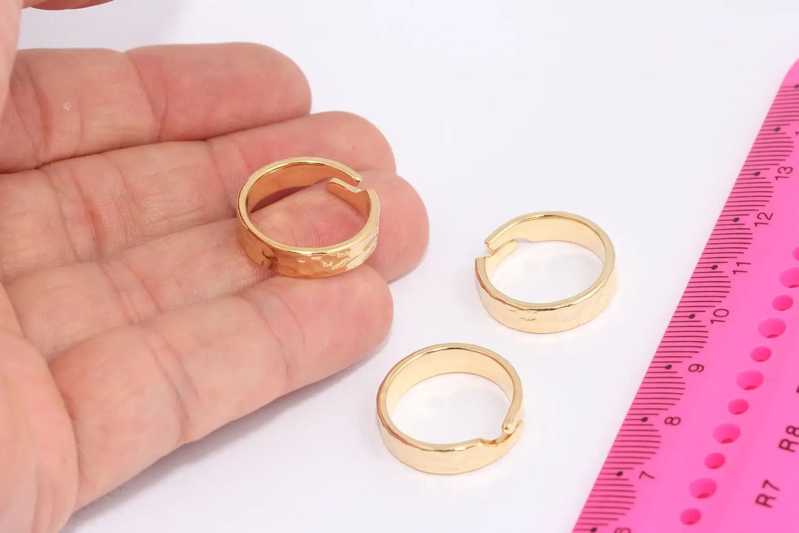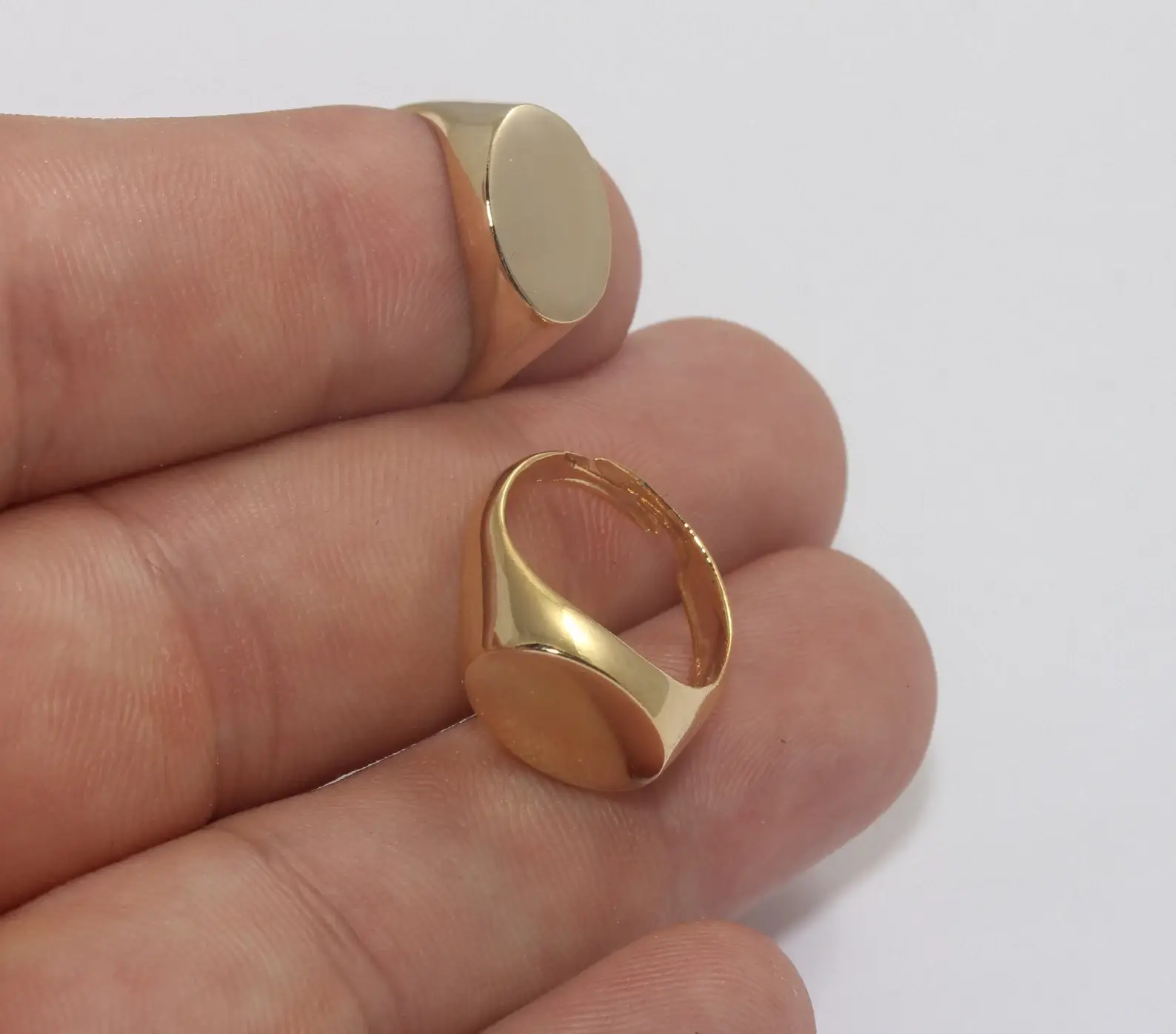 Material: Latón Tamaño interior: Anillo ajustable Color: Chapado en oro brillante de 24k Cantidad: Opcional