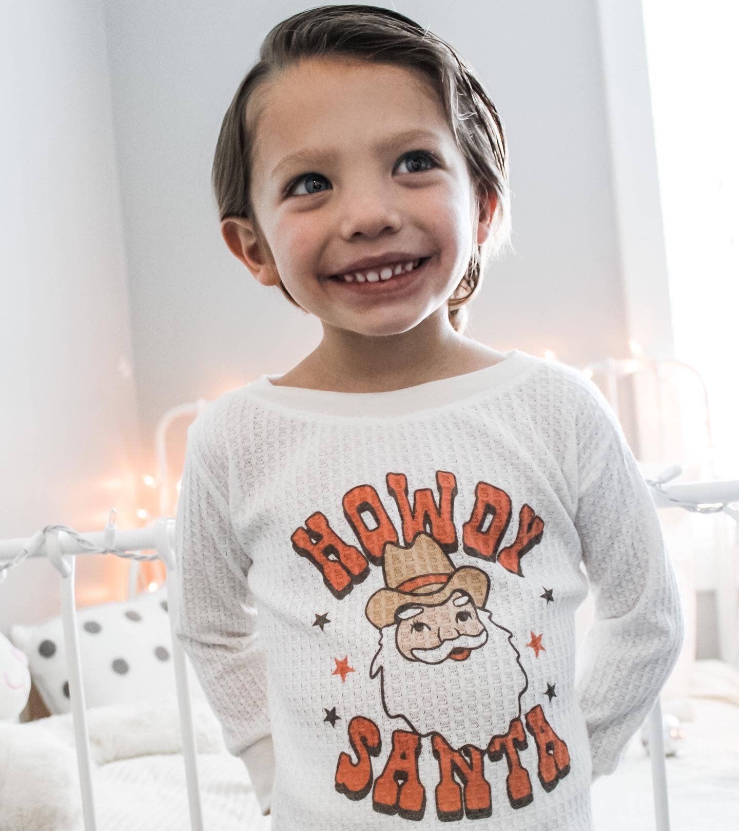 Elige entre nuestro pijama marfil de dos piezas con gofres o nuestro conjunto de pijama de dos piezas con gofres de avena. Cada camisa puede tener «patatas fritas antes que chicos» o «Curlies before girlies» Vienen en tallas de 0 a 3 meses hasta 6 años.