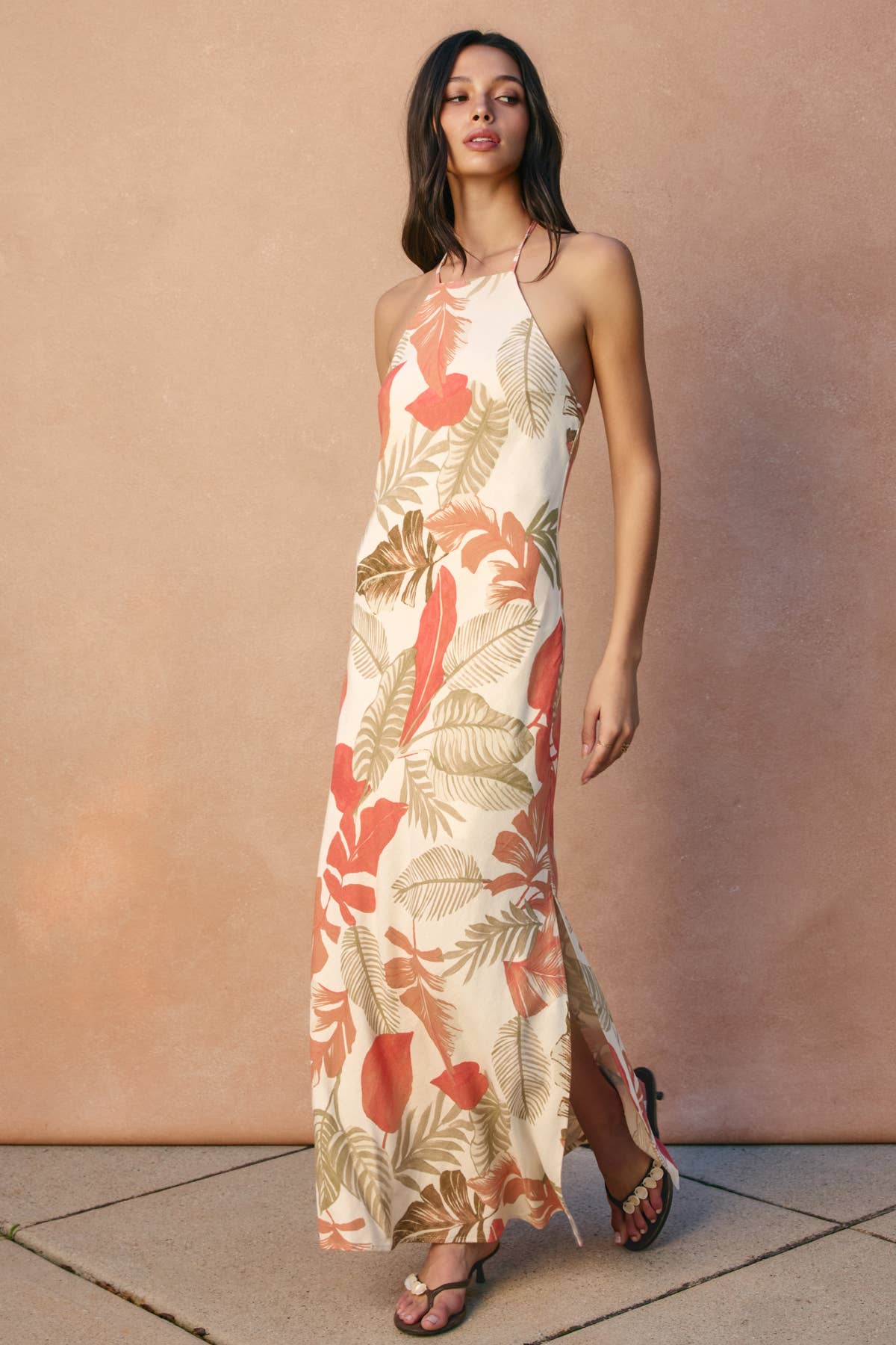 Mono de mezcla de rayón y lino con estampado de hojas tropicales. La modelo mide 1,75 m y lleva la talla pequeña. - Piernas anchas - Tirantes anchos ajustables con cierres de botón ocultos - Cinturón de la misma tela - Cierre de tipo pull on - Sin banda elástica, sin fruncido - Bolsillos laterales - Parcialmente forrado (parte superior) Exterior: 70% Rayón, 30% Lino Forro: 100% Rayón