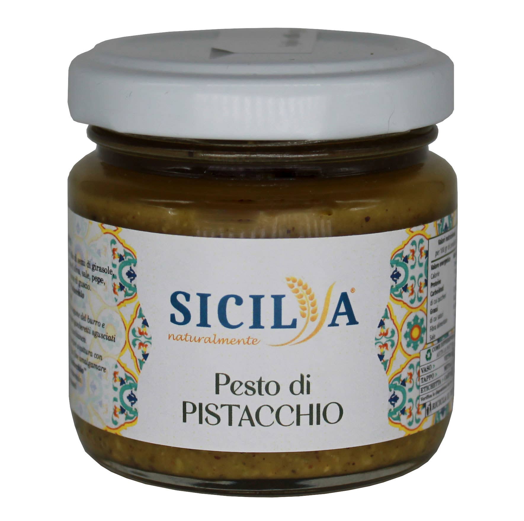 SKU: SNS-203 Hecho en Italia Caducidad: Entre 12 y 24 meses Conservación: Nevera Dieta: Vegetariano Producción: De origen local, Si edulcorantes artificiales, Sin OMG, Sin antibióticos, Sin conservantes, Sin hormonas añadidas, y Sin nitratos ni nitritos añadidos Ingredientes: - Pistacho siciliano - Aceite de oliva virgen extra, aceite de semillas de girasol, sal, pimienta, ajo, posibles trazas de cáscara Peso: 100 g (3,53 oz) Dimensiones: 5,5 x 5,5 x 6 cm (2,2 x 2,2 x 2,4 in) Producción: Producción ética