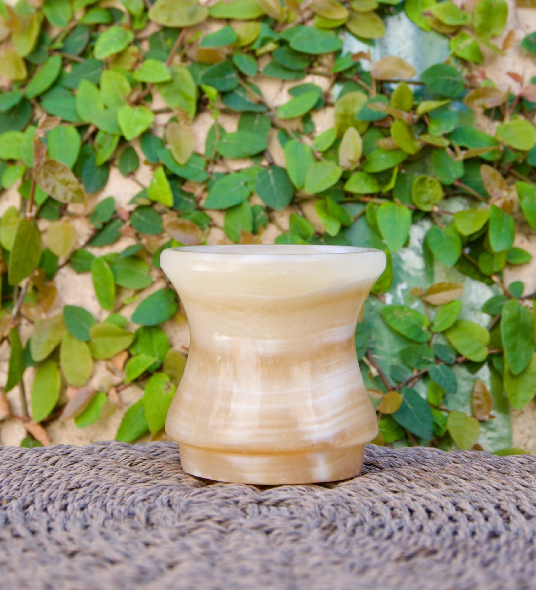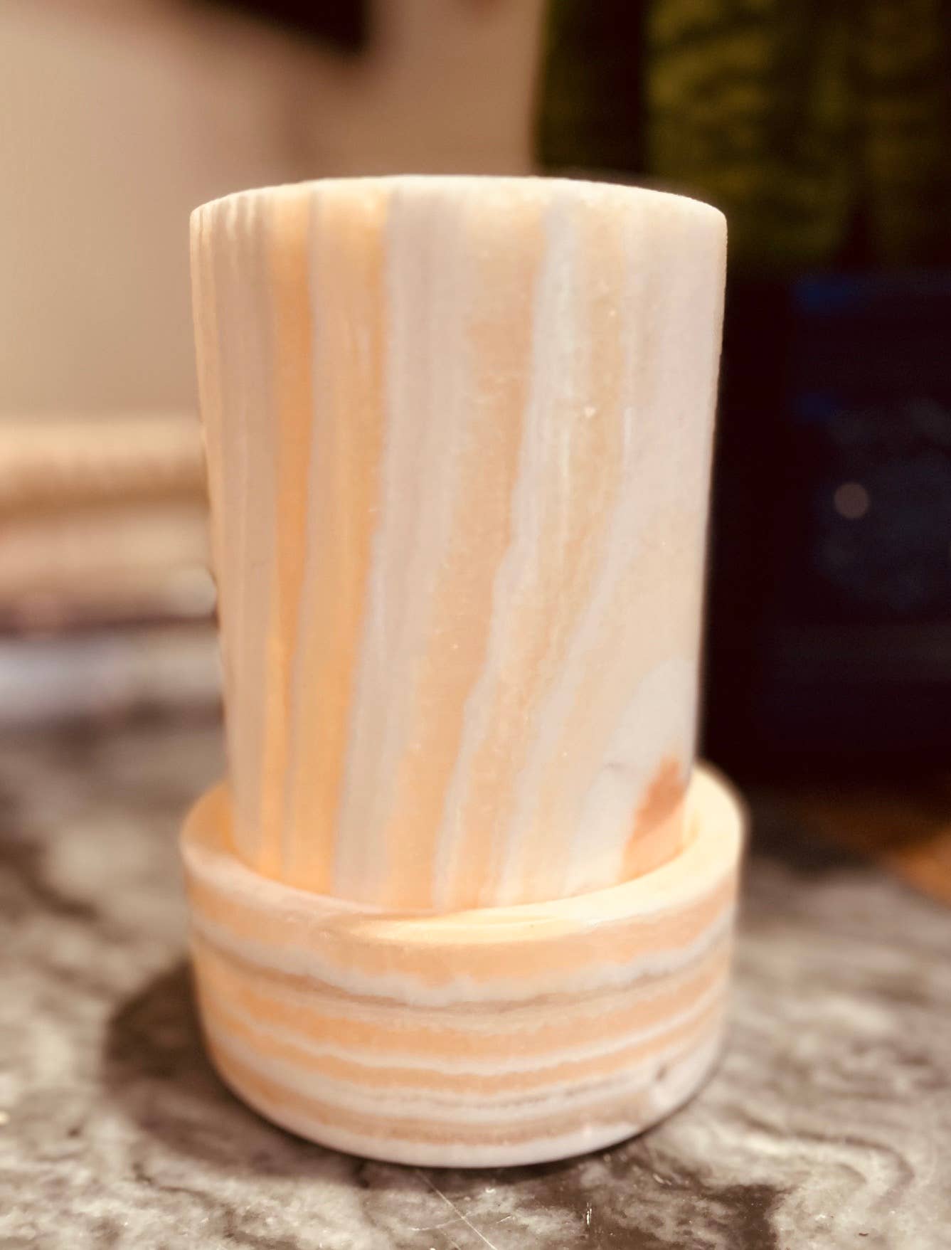 Un objeto de belleza durante el día y una luz ambiental impresionante por la noche. Este alabastro único de color blanco Sahara se extrae de la histórica cantera del Rey Tut.