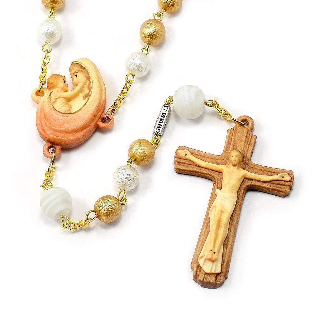 Rosario devocional para los no nacidos. Rosario devocional especial con perlas con un diámetro de 13x10 mm en forma de lágrima. Cada uno contiene un niño no nacido en su interior. Cruz y cruz en metal dorado. Incluye un folleto en italiano que ilustra cómo y cuándo se recita el rosario. Empaquetado en un paquete de plástico transparente. El artículo se fabrica en Italia. CIRCUNFERENCIA DEL ROSARIO 104 CM DIÁMETRO DE GRANO: 13X10 MM ALTURA DE LA CRUZ 5 CM ANCHO DE CRUZ 2,5 CM