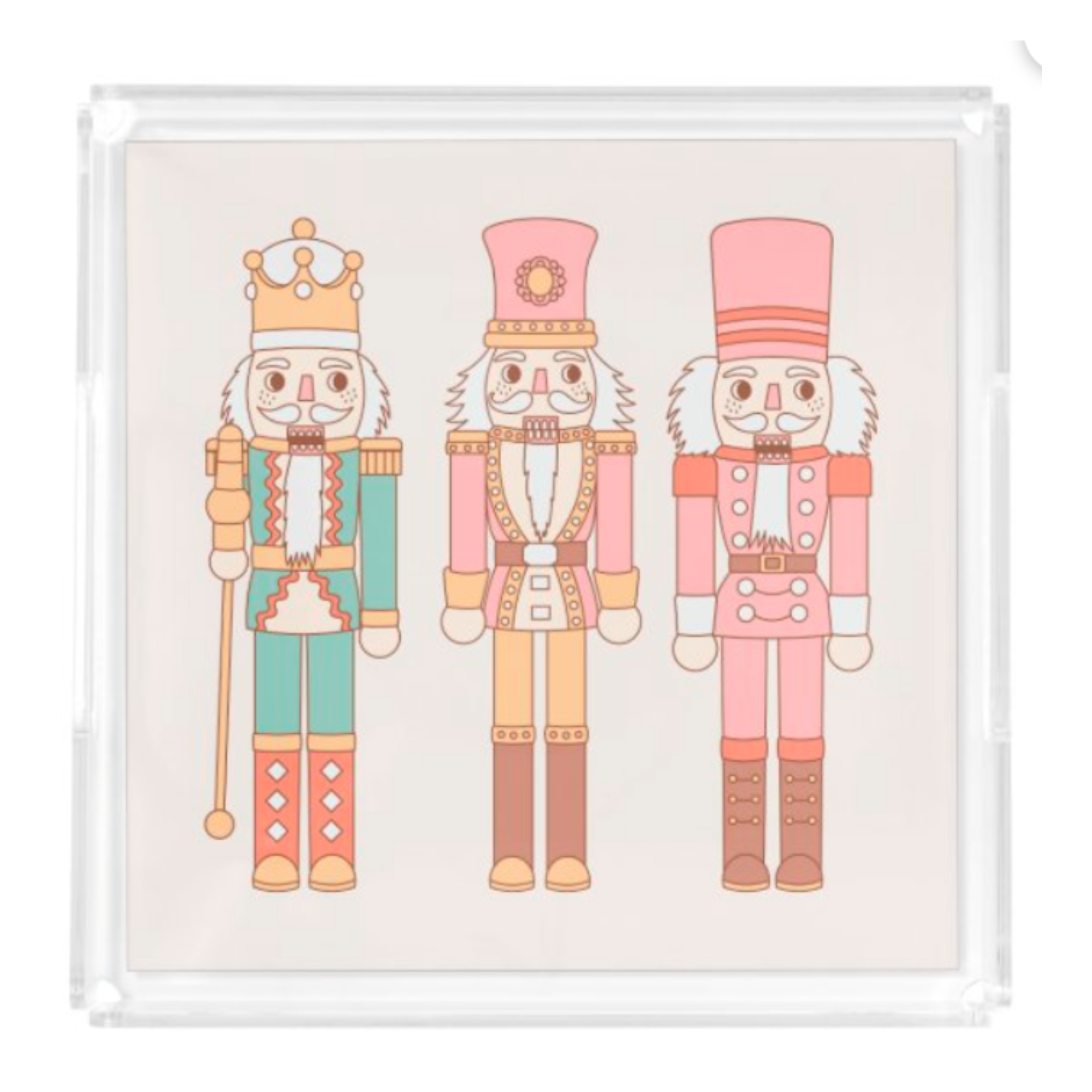 Bandeja de Servir de Acrílico - COLECCIÓN NAVIDEÑA - Trío de Cascanueces Rosa