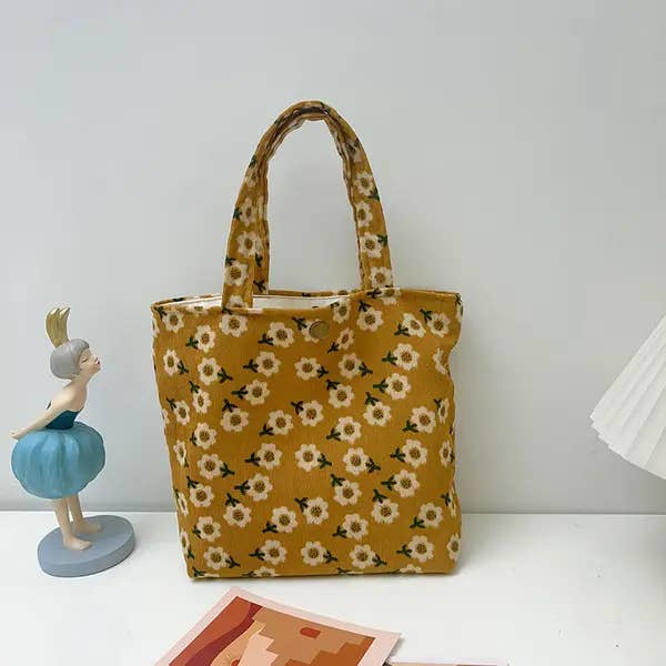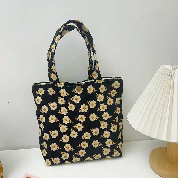 Bolso tote vintage de pana con diseño floral al por mayor