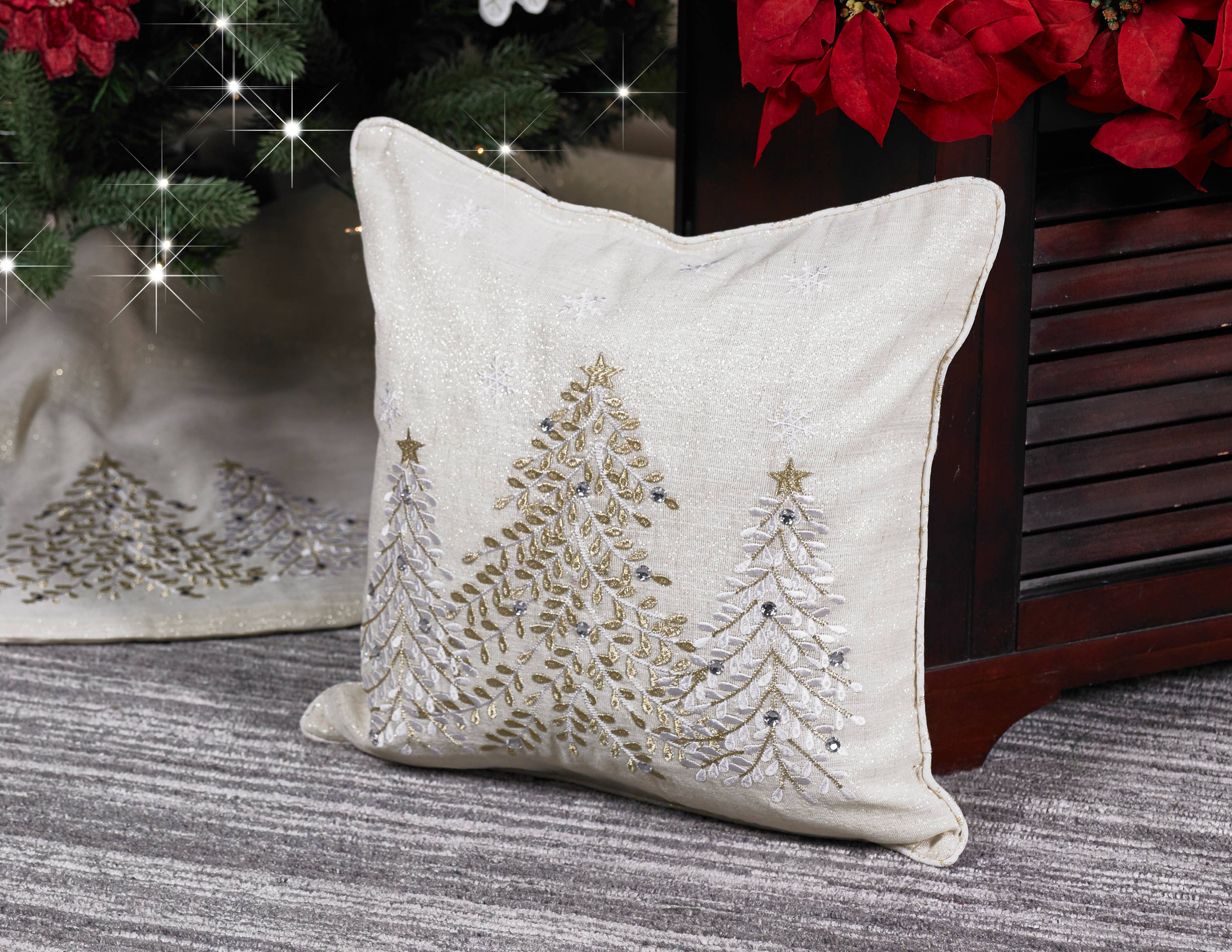 Camino de mesa navideño Winterland con árbol bordado y joyas