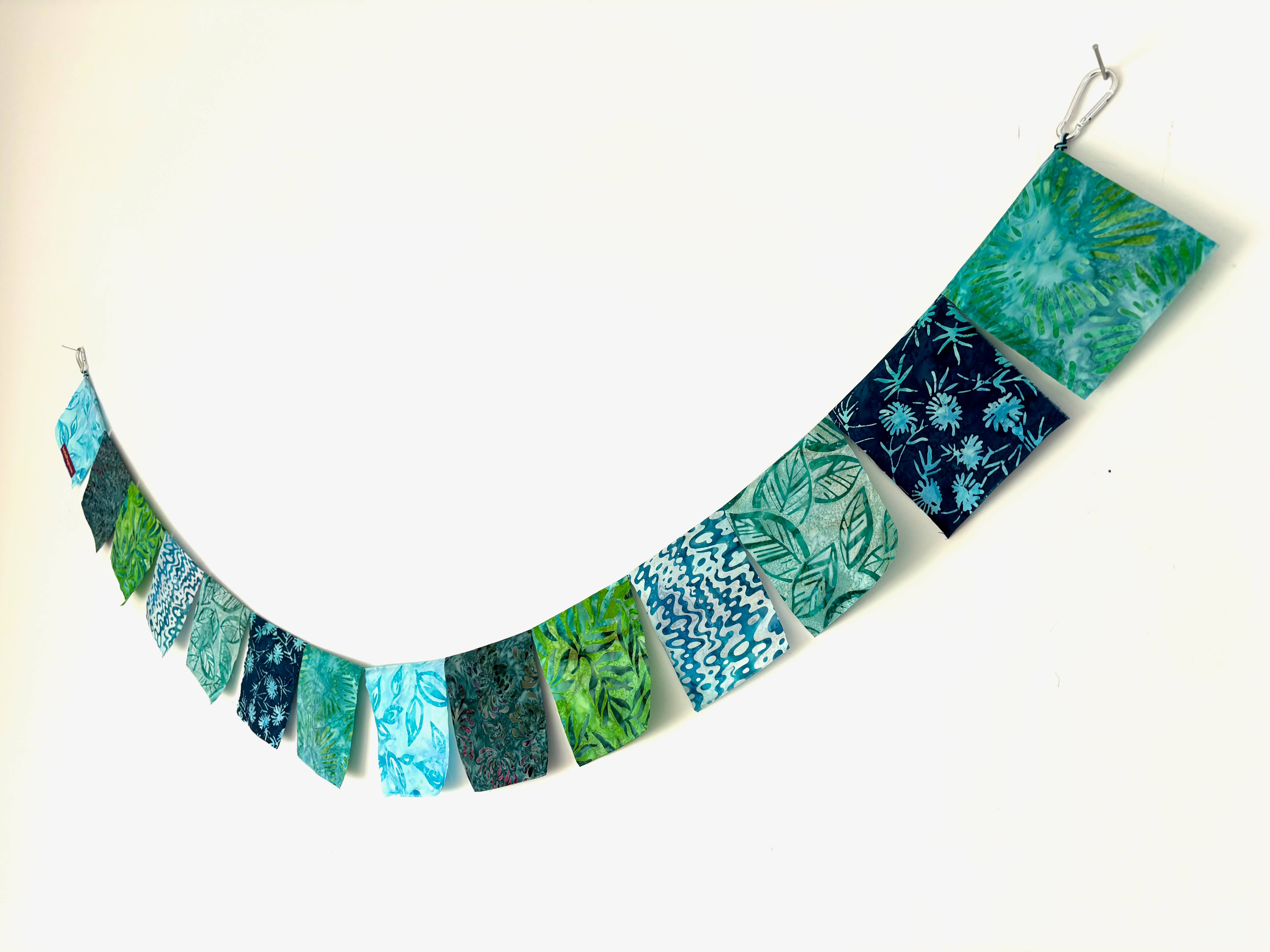 ¡Las banderas de reggae están compuestas por los colores verde, amarillo y rojo! Estas banderas son perfectas para los amantes de la música reggae, para festivales o simplemente para colgarlas en la playa. Imagina las olas, la arena y la música reggae sonando mientras te relajas bajo una sombrilla con estas banderas ondeando en la brisa. Aproximadamente 6 pies de largo x 5 pulgadas de alto. Las Banderas Alegres son fáciles de exhibir para la venta al por menor, el inventario se enrolla en pequeños paquetes de regalo que llenan una cesta fácilmente. Las banderas de exhibición son ideales para colocar sobre una ventana para que los compradores puedan ver cada tira disponible en la cesta de abajo. Tira de 6 pies de largo (completamente extendida) de brillantes banderas temáticas de reggae para colgar donde te sientas alegre. Las banderas están pegadas a mano con un pegamento de tela duradero a dos líneas de cuerda de cáñamo orgánico y colorido. Las banderas vienen con mini clips de metal para colgarlas fácilmente. Cada bandera mide aproximadamente 4"x5". Son de algodón batik de doble cara con colores y patrones vibrantes.