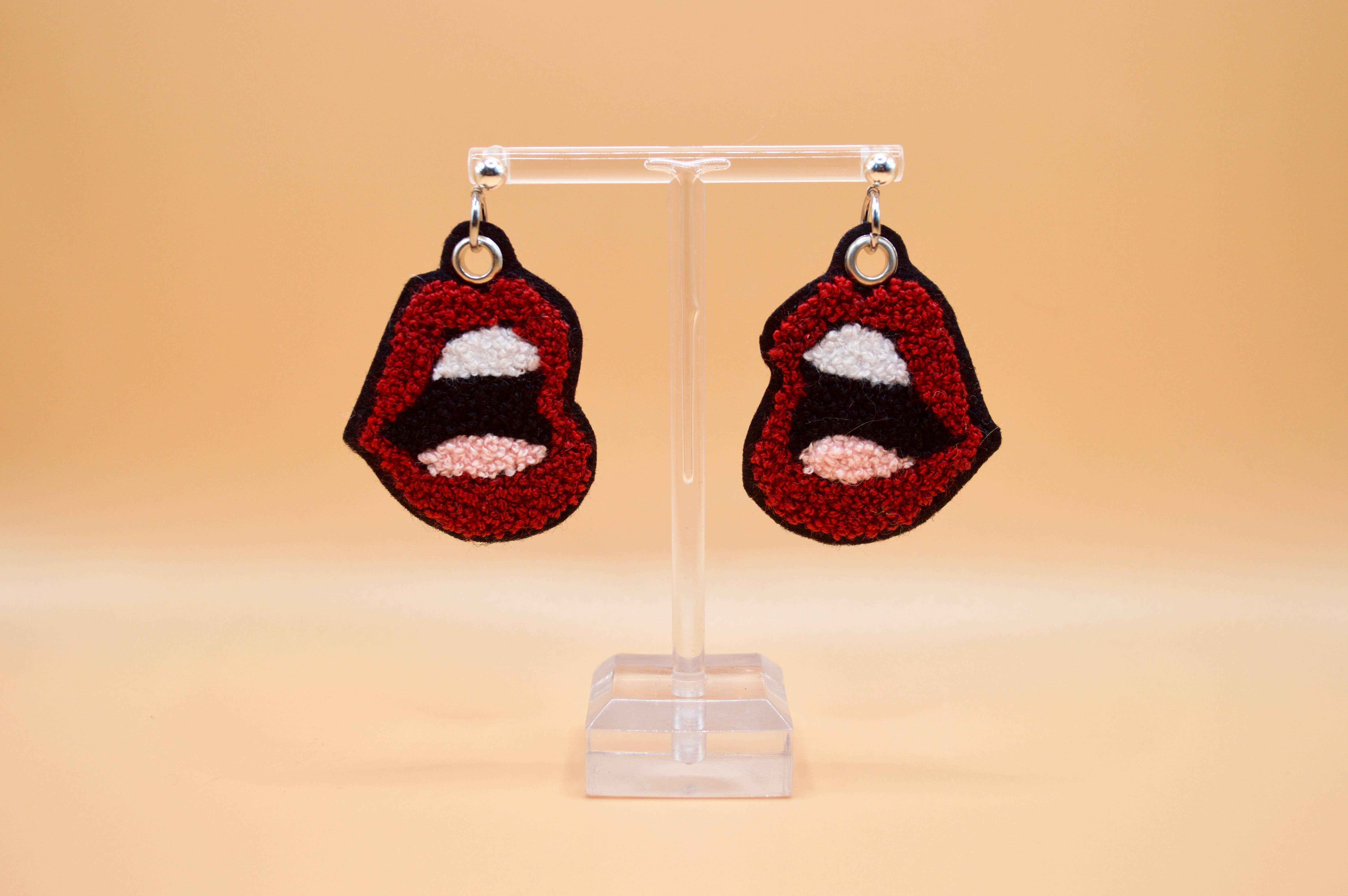 Los pendientes bordados Untrend Shop están hechos por la propietaria del negocio, Aly en su máquina de bordar de punto de cadeneta Singer vintage de 1933. La máquina se controla manualmente mediante un pedal y una manivela. Cada pendiente se hace a pedido con cuidado e intención, puntada a puntada.