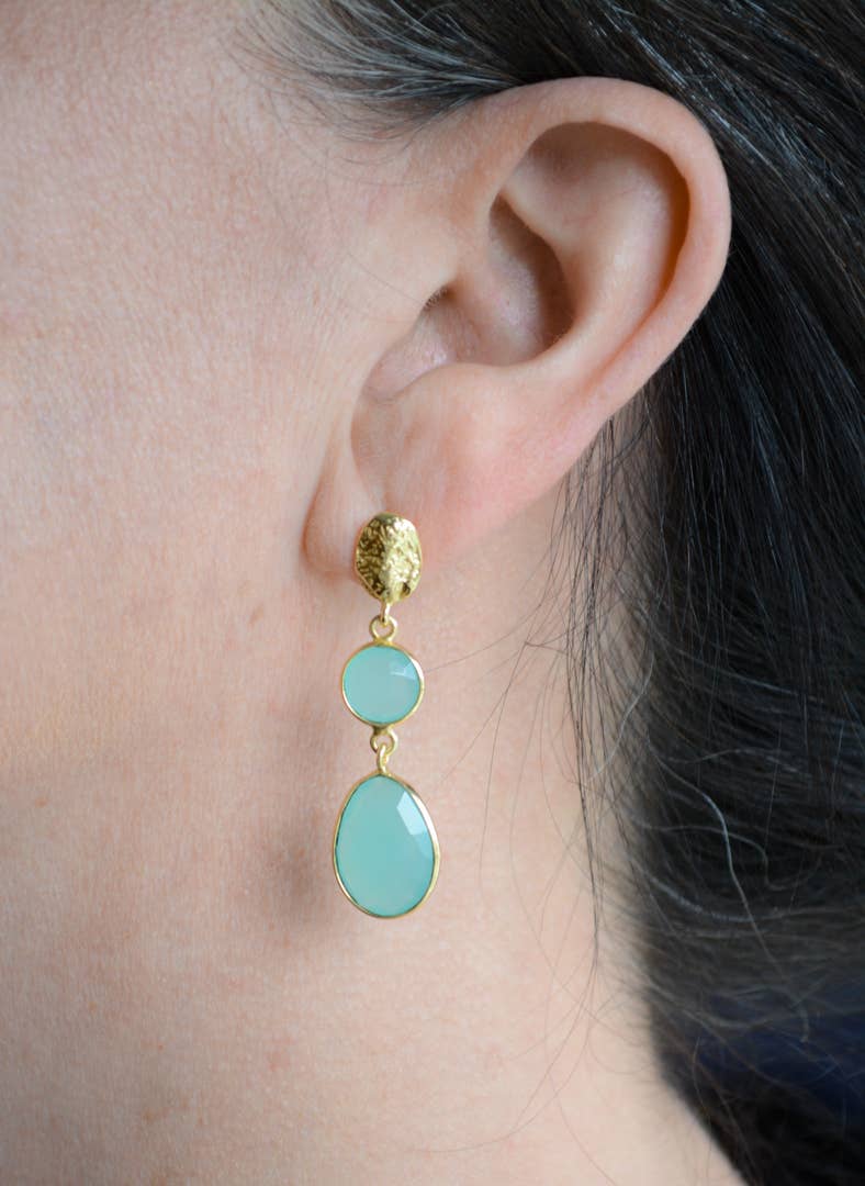Pendiente de doble gota de calcedonia Aqua