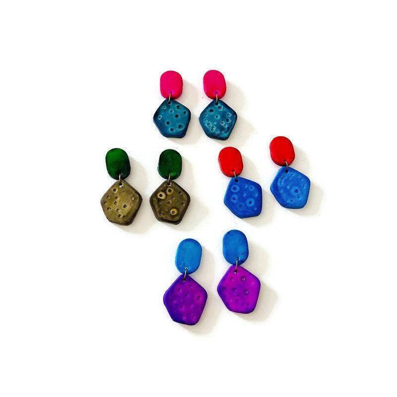 ¡Estos pendientes en negro y rosa fucsia son modernos y elegantes! Tienen un estilo texturizado que seguramente llamará la atención. Combínalos con el collar llamativo a juego para completar el look. ¡El conjunto tiene un aire moderno y atrevido que seguramente hará girar cabezas! Medidas: * El babero mide 6 pulgadas de ancho y 2 pulgadas de alto. Está conectado a una cadena de tono bronce de 18 pulgadas. * Los pendientes a juego miden 2 pulgadas de largo y 0.8 pulgadas de ancho. Se pueden pedir como clips o con cierre de presión. Materiales: * Arcilla polimérica de grado profesional * Tinta de alcohol * Cadena libre de níquel/plomo Todas mis joyas están hechas a mano con amor en mi taller en Halifax, NS. Me encanta crear piezas de joyería brillantes, coloridas y atrevidas que la gente nota y elogia. Mis joyas son perfectas para mujeres que tienen un estilo aventurero y les gusta destacar como su increíble yo. Sé brillante, sé atrevida y diviértete :) Explora más conjuntos de joyas aquí Explora más collares llamativos aquí Explora más pendientes de clip para orejas no perforadas aquí