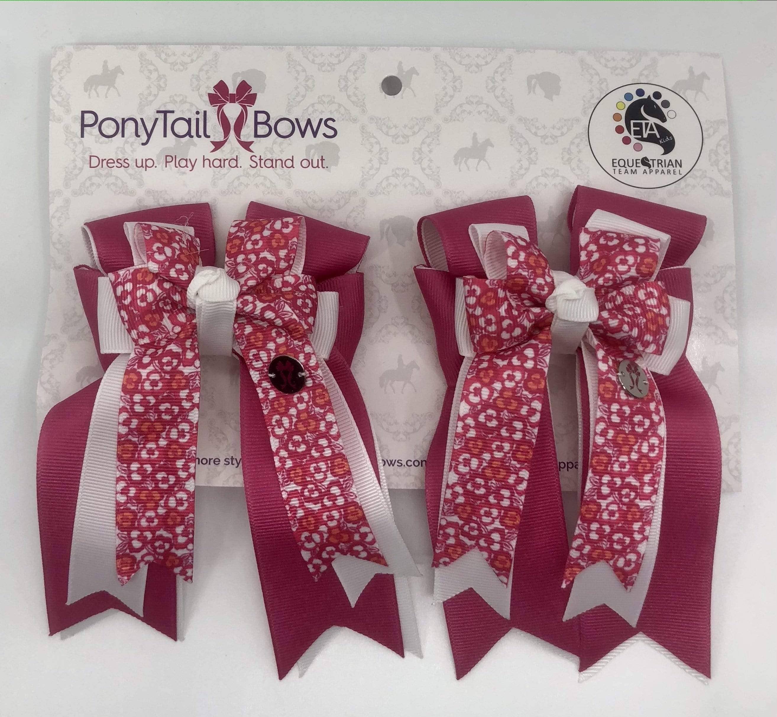 PonyTail Bows est fier d'être l'arc préféré des poneys à travers le pays. Tous nos nœuds sont fabriqués aux États-Unis et fabriqués à la main par nos incroyables fabricants d'arcs. L'objectif de PonyTail Bows est d'autonomiser les jeunes athlètes au début de leur carrière équestre. 🎀 Habille-toi. Joue dur. Démarquez-vous.