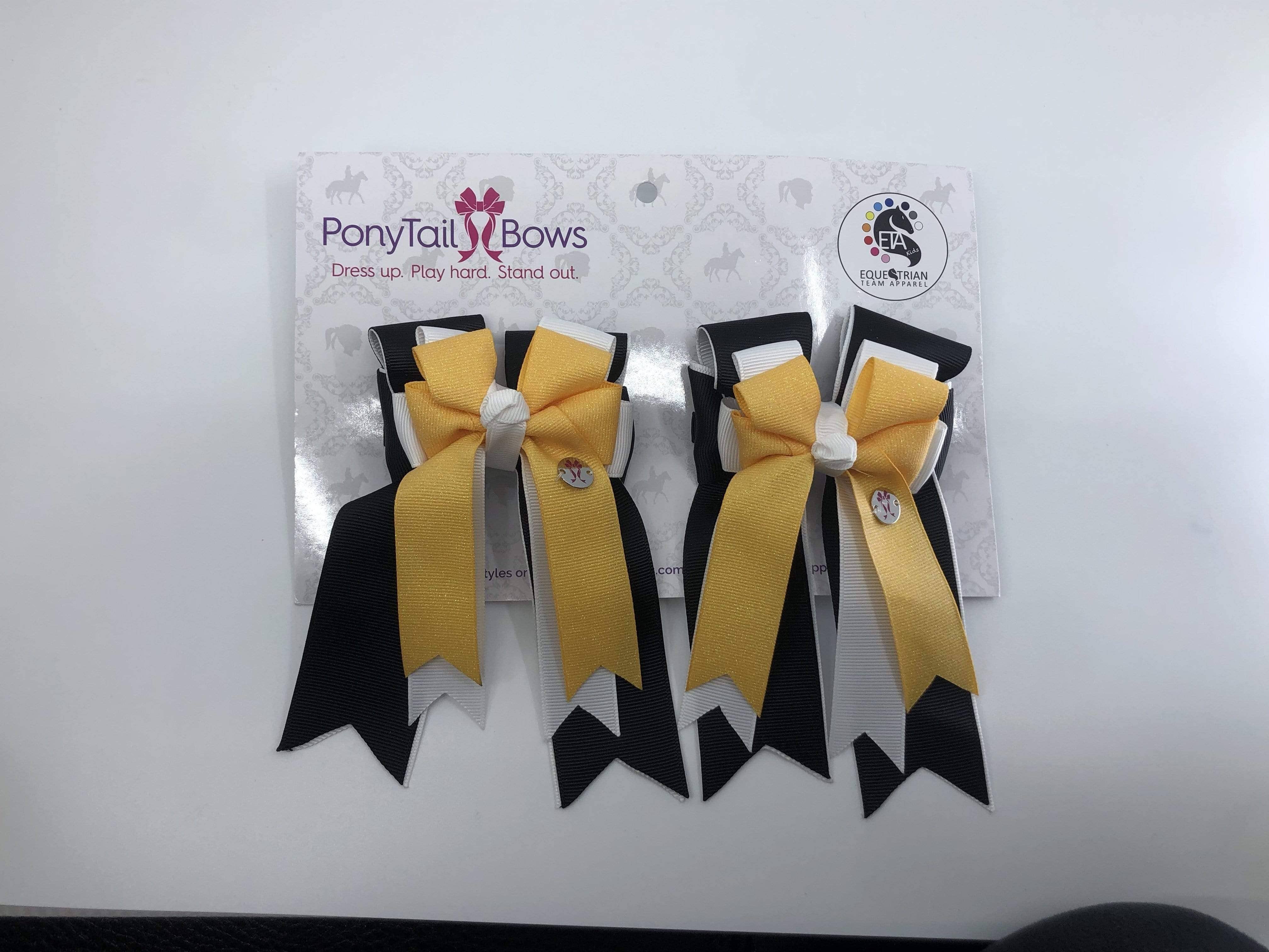 PonyTail Bows est fier d'être l'arc préféré des poneys à travers le pays. Tous nos nœuds sont fabriqués aux États-Unis et fabriqués à la main par nos incroyables fabricants d'arcs. L'objectif de PonyTail Bows est d'autonomiser les jeunes athlètes au début de leur carrière équestre. 🎀 Habille-toi. Joue dur. Démarquez-vous.