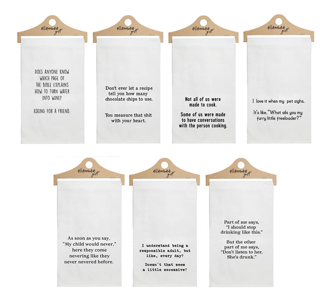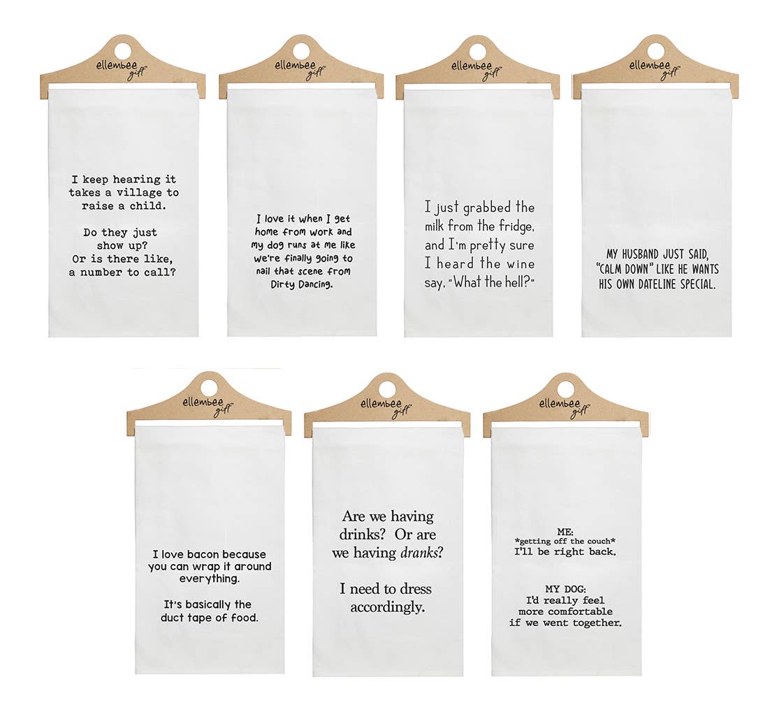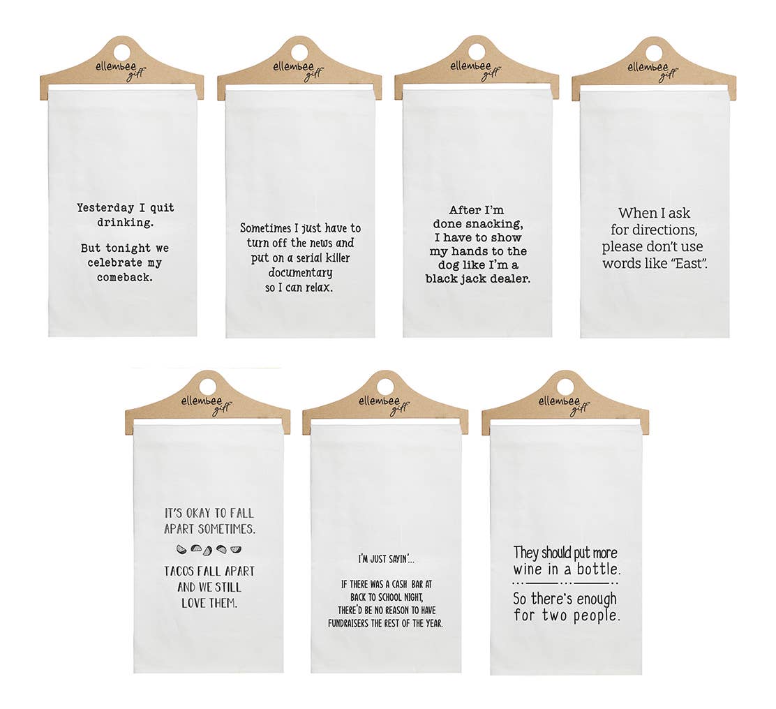 Chez ellembee, nous créons des cadeaux astucieux pour des personnes astucieuses ! Notre équipe entièrement féminine est en activité depuis 2008, et nous sommes fières de répandre le bonheur, le rire et les bonnes ondes à travers nos produits amusants. Nos articles cadeaux humoristiques sont disponibles ici sur Faire, sur notre site web, www.ellembeegift.com, et dans plus de 4 000 boutiques à travers les États-Unis, le Canada et l'Europe. Nous avons un entrepôt de 14 000 pieds carrés à Highland, MI, où nous imprimons à la main chaque serviette, pochette à fermeture éclair, sac de tous les jours et body, en utilisant une encre écologique à base d'eau.