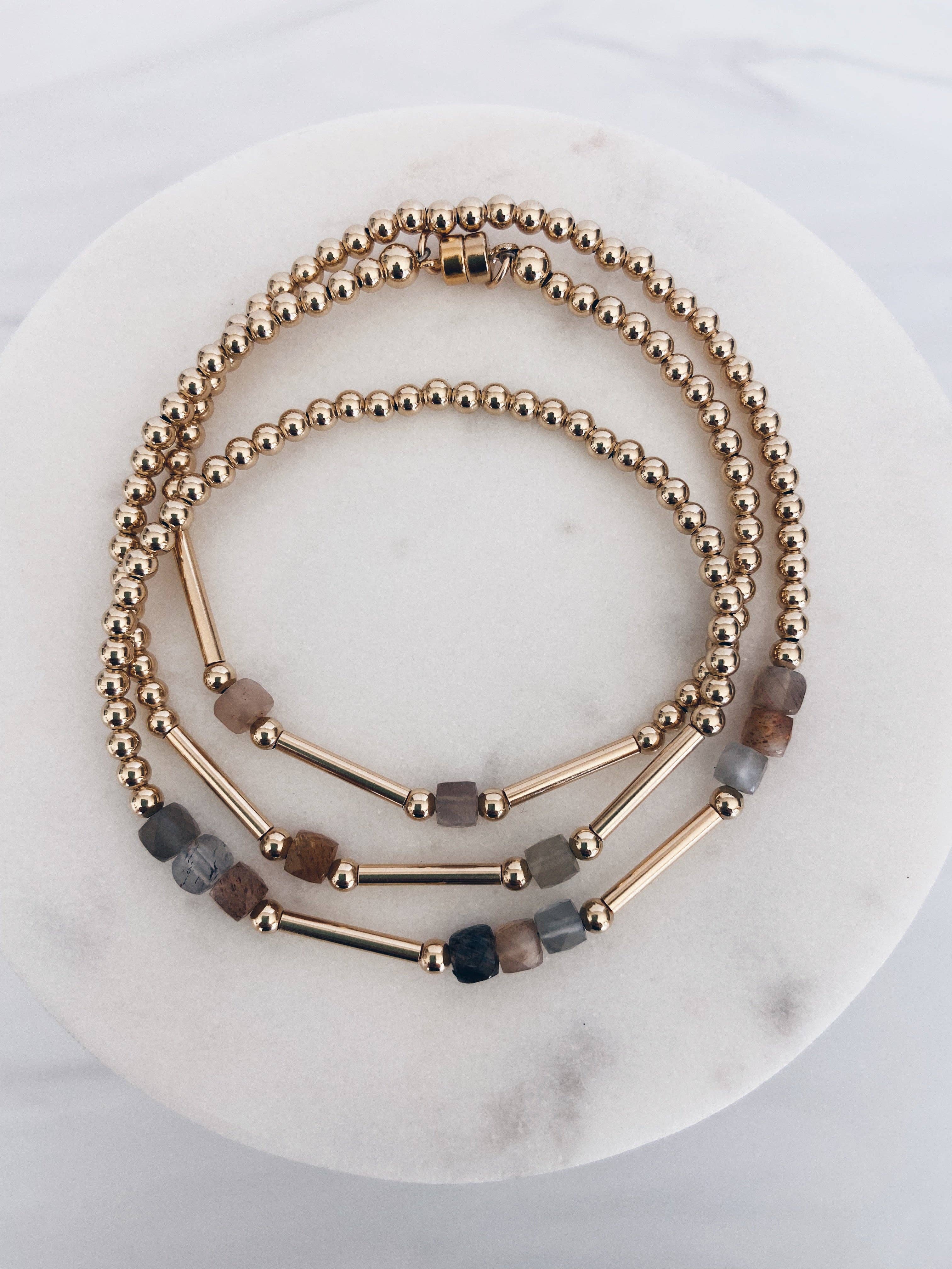 Présenté dans Vogue and Vanity Fair, Mac & Ry Jewelry est conçu et fabriqué à la main par Cindy à San Clemente, en Californie. La plupart de ses pièces proviennent des États-Unis et sont fabriquées avec le meilleur remplissage en or 14 carats, de l'argent sterling et des pierres gemmes semi-précieuses. Elle aime créer des pièces qui font la déclaration tout seul et des pièces minimes qui peuvent être superposées et mélangées avec vos favoris. Mac et Ry Jewelry se trouvent dans certaines boutiques partout aux États-Unis. Cindy préfère que ses bijoux soient dans des endroits pittoresques où les boutiques répondent à leur clientèle locale. Fais ce que tu aimes !