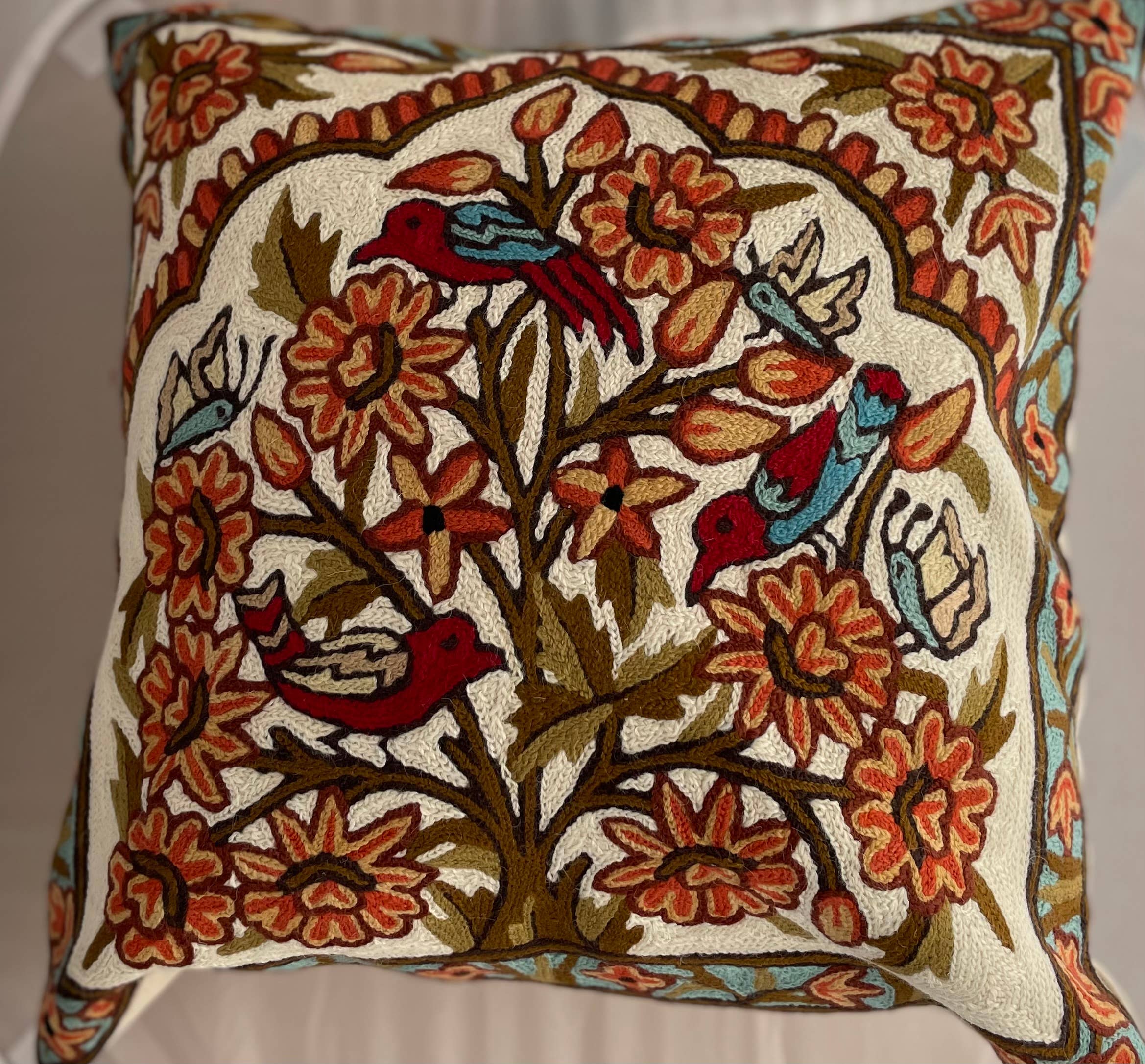 Nos produits sont conçus au Canada en collaboration avec des artistes canadiens et entièrement fabriqués à la main par des maîtres artisans utilisant des techniques de broderie et de textile séculaires. Nos produits sont brodés à la main en utilisant 100 % de laine teinte à la main dans un environnement issu du commerce équitable. Alliant des designs et des couleurs modernes à des techniques ancestrales, nous nous efforçons de créer des produits au design intemporel, à l'attrait esthétique et à la qualité durable. Nous pratiquons une production équitable et garantissons un impact environnemental minimal. Nous travaillons en partenariat avec de petites familles d'artisans de l'industrie artisanale et produisons nos propres modèles en utilisant la teinture, le tissage, la broderie au point de chaîne,