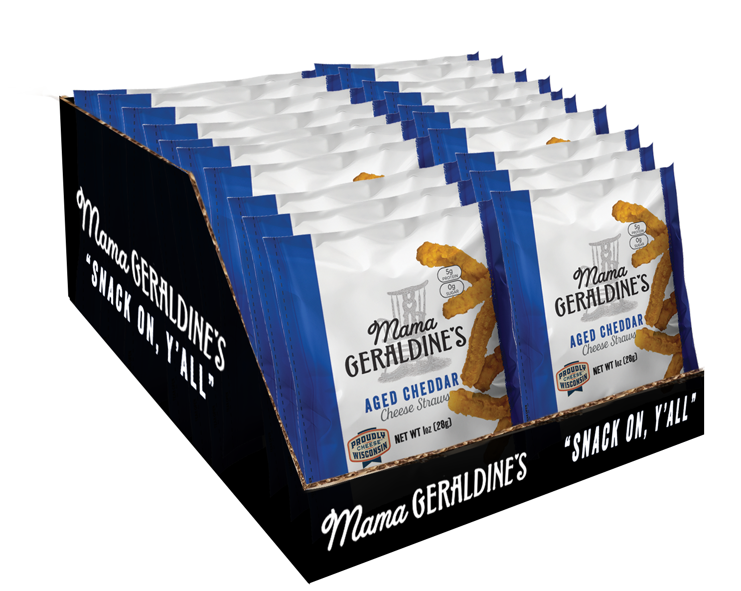 Mama Geraldine est de retour ! La fondatrice Cathy Cunningham a choisi de s'envelopper dans une « bulle d'optimisme », en faisant preuve de résilience et de courage pour remettre Mama Geraldine en production. S'inspirant de Mama Geraldine, elle s'est engagée à cuisiner avec la qualité supérieure que nos fidèles clients attendent avec les célèbres pailles à fromage de Mama Geraldine. Parce que c'est ce que font les mamans. Mama Geraldine's est une marque appréciée depuis 25 ans. Elle est récemment devenue une collation tendance, riche en protéines et zéro gramme de sucre, conforme aux directives diététiques Keto. Nos snacks sont 100 % naturels et 100 % irrésistibles !