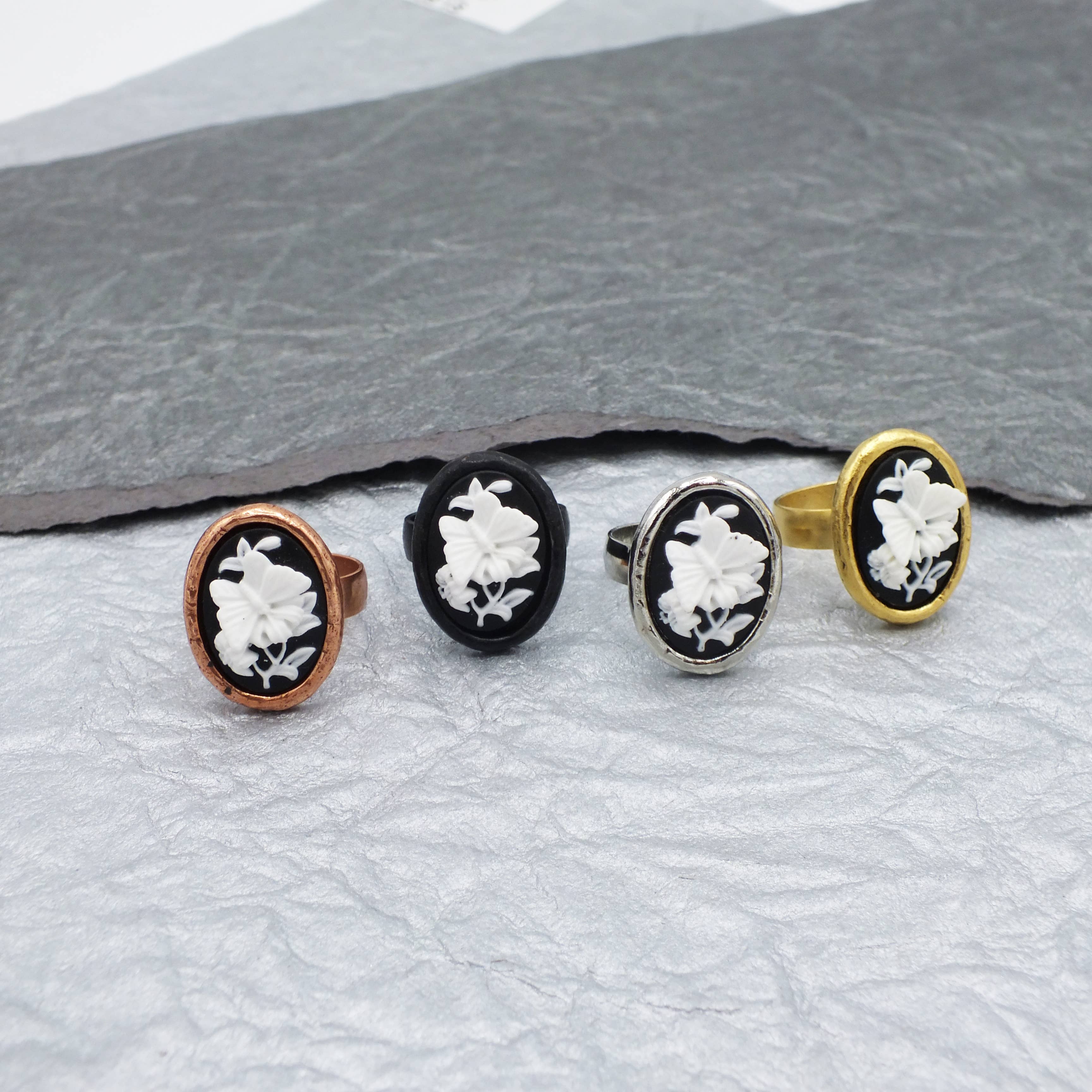 Fizz est fabriqué aux États-Unis avec des pierres, des cristaux et des camées du monde entier. Moulé, conçu et créé par une équipe d'artisans qualifiés afin que nous puissions créer un peu de fantaisie pendant de nombreux jours. Du gothique au glamour en passant par le preppy, nous avons des chauves-souris et des araignées, des licornes et des fées à profusion... Sirènes, squelettes, jolies camées de dame, charme vintage scintillant, pierre de lune perle lueur, jeu de couleurs, balancement du métal et ainsi de suite.. Ravi de vous aider avec les commandes spéciales ! Faites-le nous savoir !