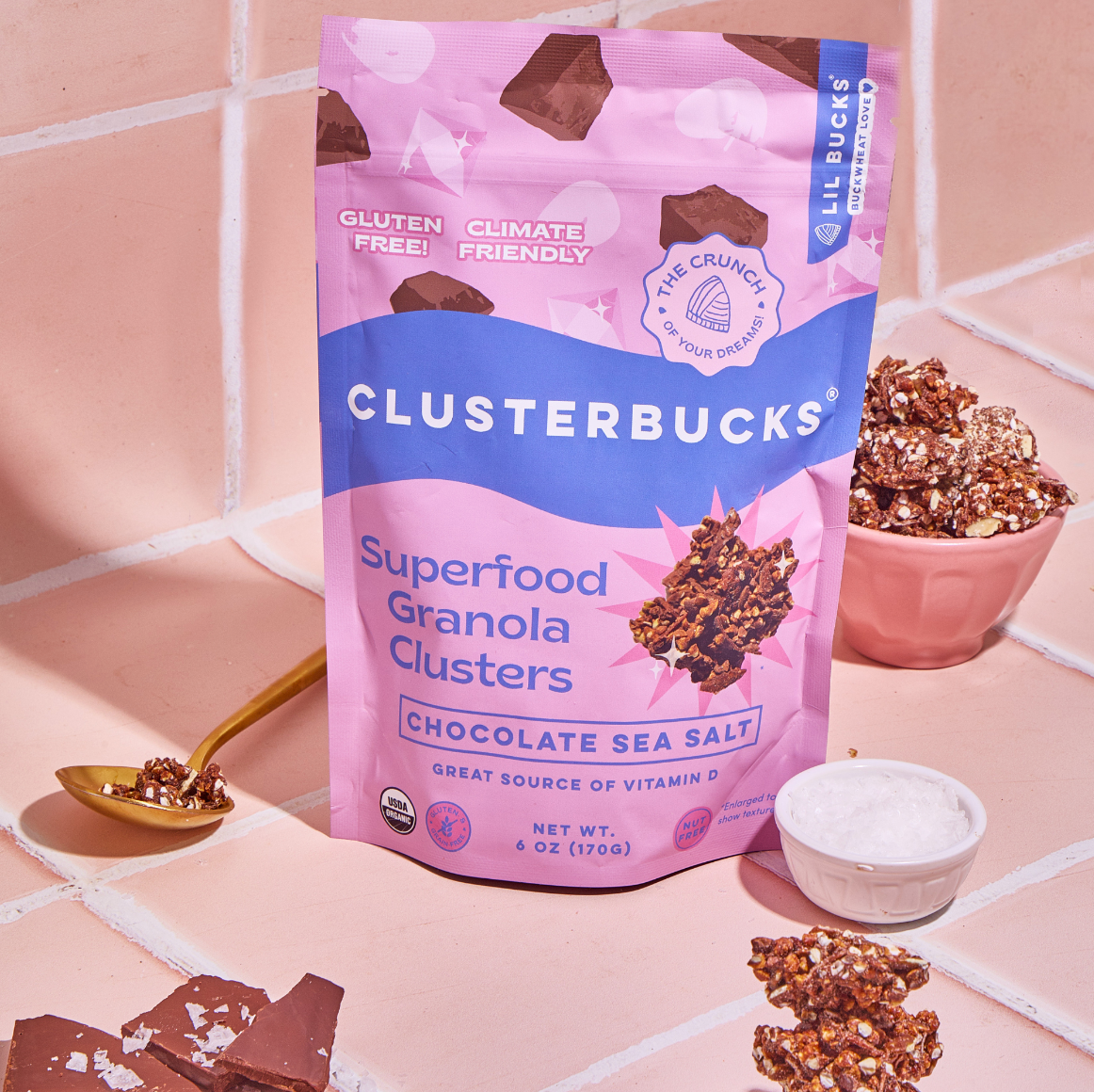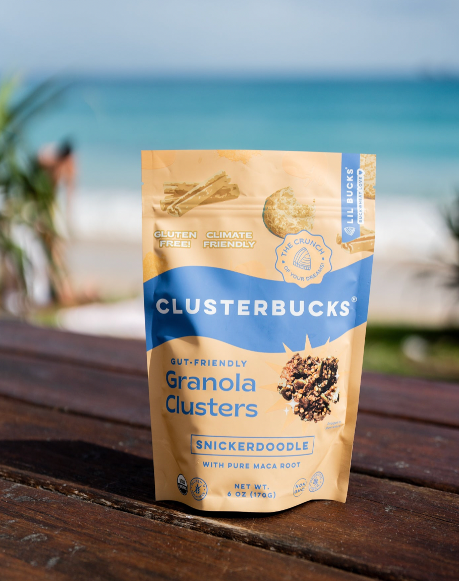 Tout a commencé en dégustant un bol d'açaï qui a changé sa vie sur la plage de Sydney, en Australie. Le bol avait LE MEILLEUR goût et la meilleure texture, et je me suis sentie bien après l'avoir mangé. Il s'avère que l'ingrédient secret ici, fournissant des protéines sans gluten, des fibres, des antioxydants et ce délicieux croquant, était le sarrasin germé ! Les Australiens adorent ça. Je suis devenue obsédée (évidemment) et j'ai pour mission de partager l'amour du sarrasin germé avec d'autres chats cool qui aiment le croquant et soucieux de leur santé, tout en promouvant l'agriculture durable aux États-Unis (le sarrasin est une excellente culture rotative pour la santé du sol qui peut pousser dans un sol pauvre en nutriments). J'ai lancé Lil Bucks Sprouted Buckwheat en 2018 avec trois saveurs : cacao, matcha et original. Mes clients adorent utiliser les graines sur les smoothies, les yaourts, les toasts, les salades, le pudding au chia et ils les utilisent pour créer leurs propres créations !