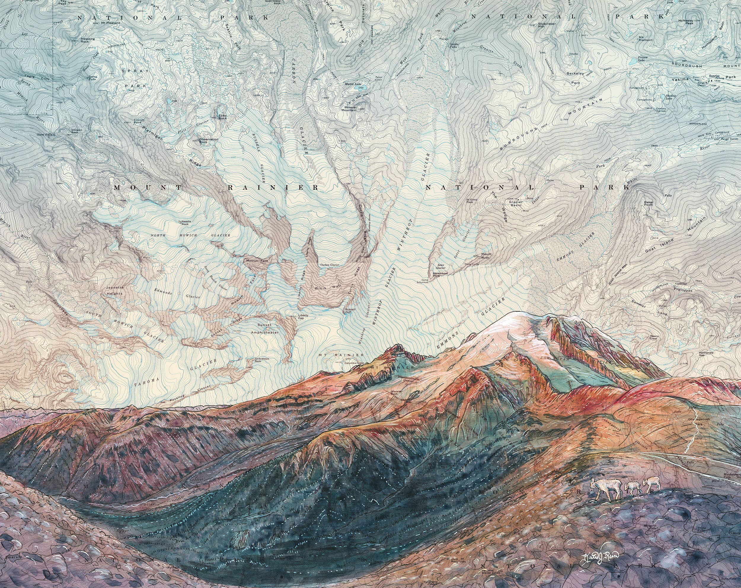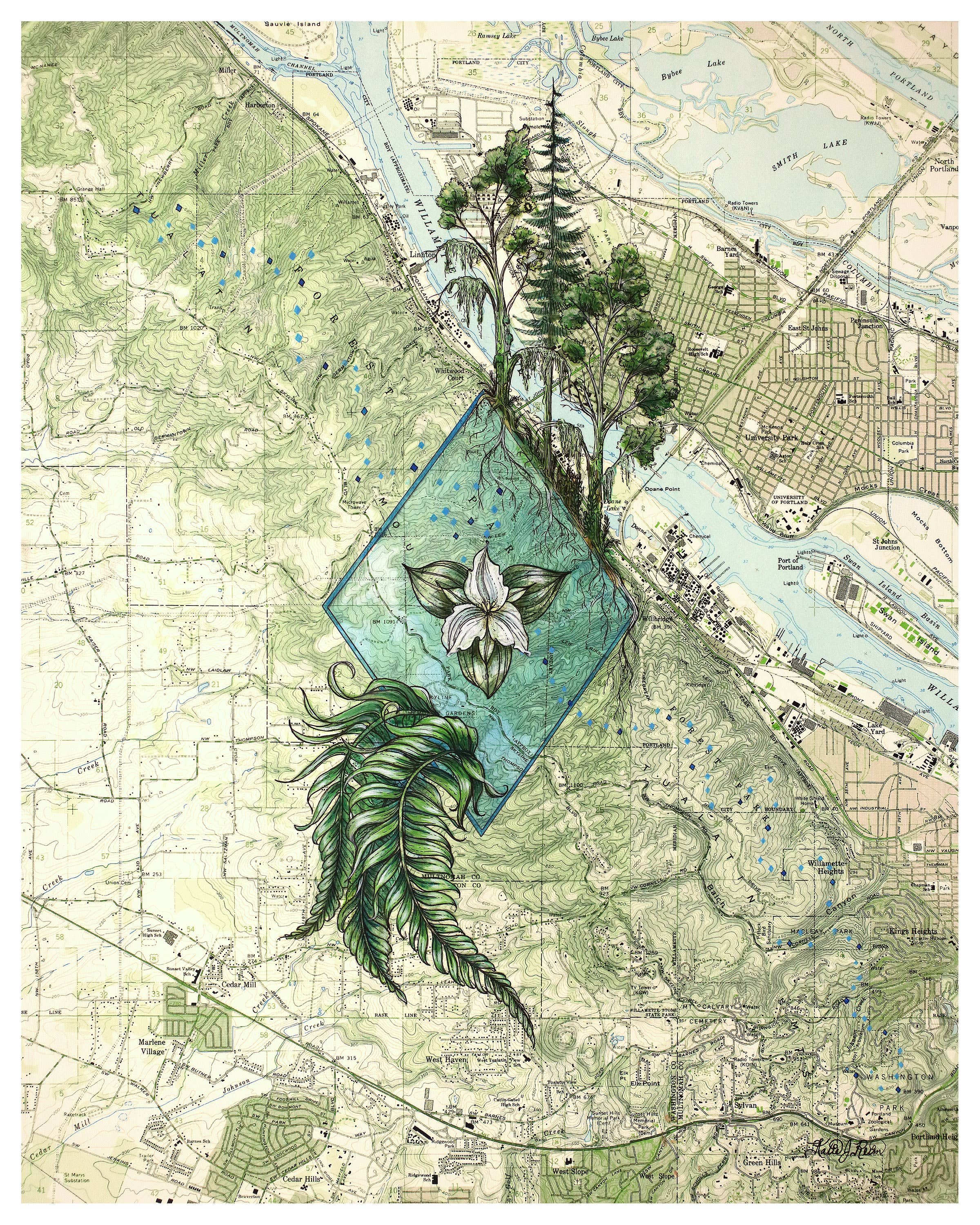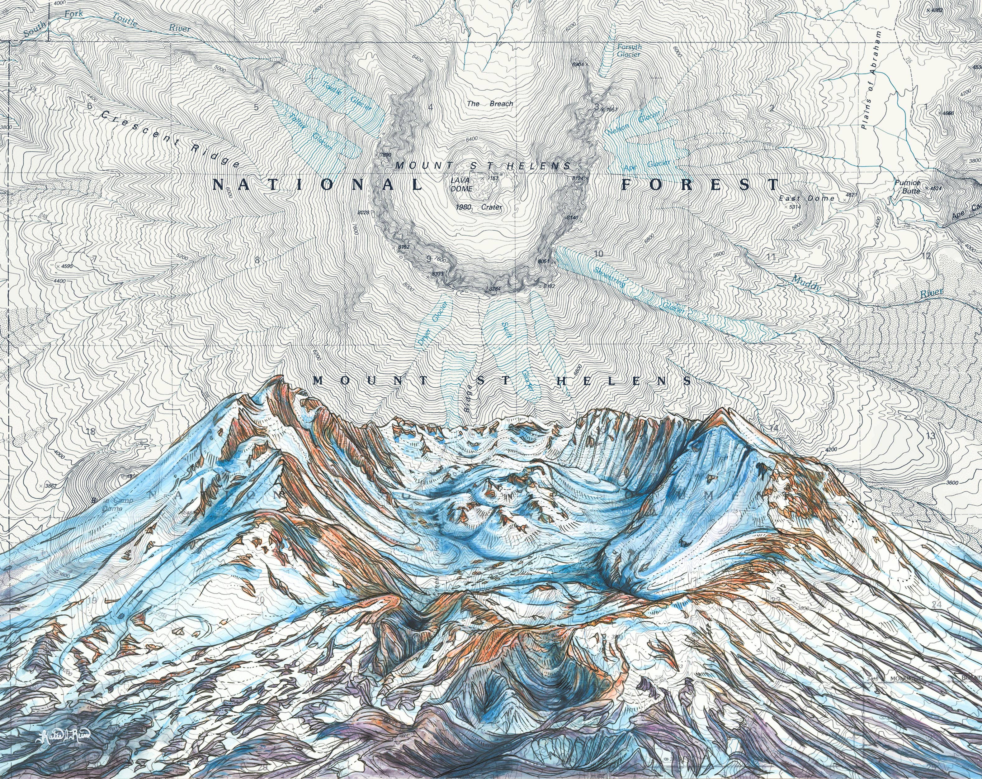 Dans le but de capturer le lien que les gens entretiennent avec leurs lieux sauvages préférés, l'artiste de Portland Katie Reim propose ses peintures sous forme de gravures, de cartes et d'articles de plein air de qualité. Fascinée par les lignes des cartes topographiques, Katie les associe aux inspirations et aux aventures qu'elle recherche dans la nature.
