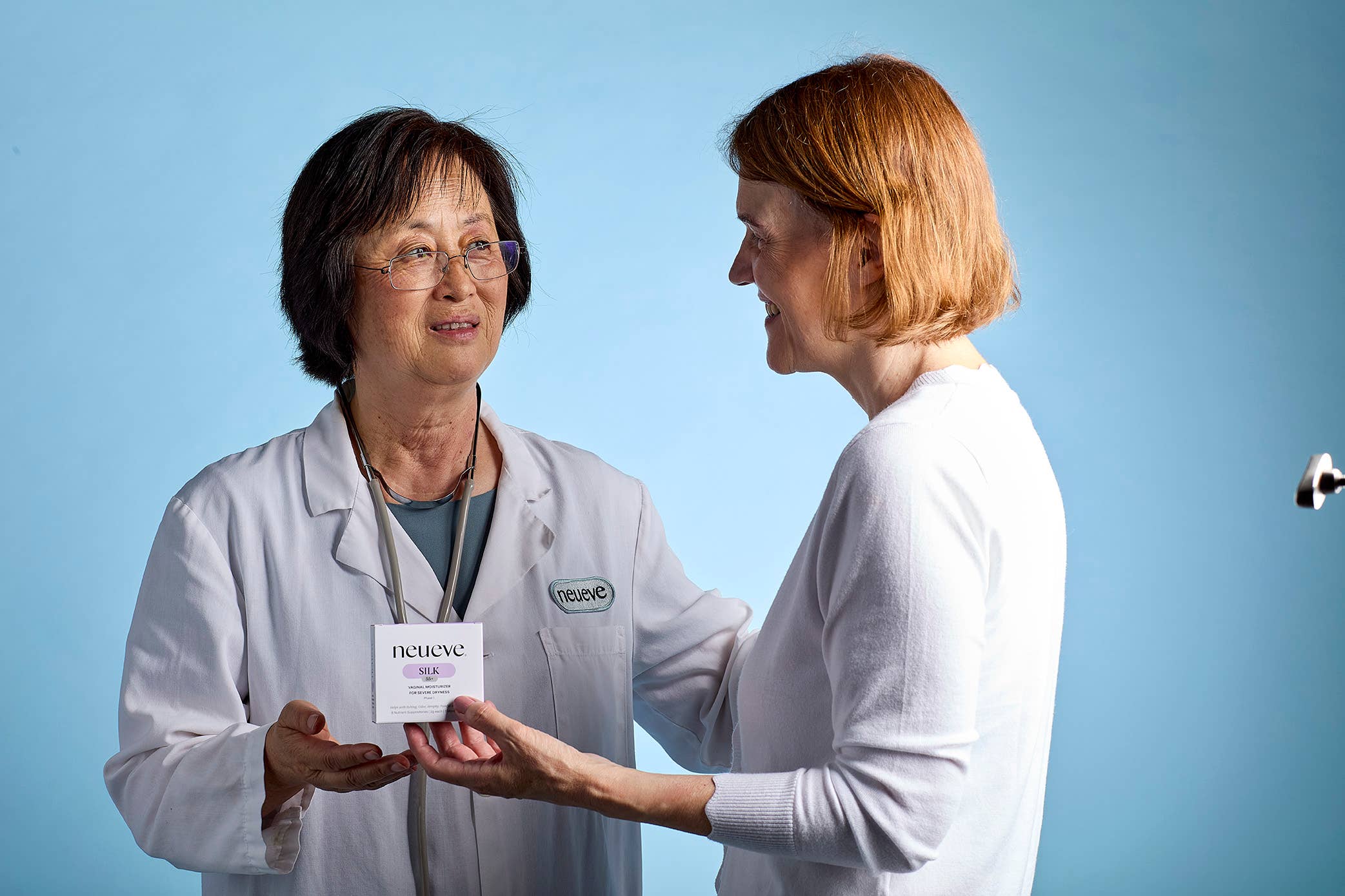 En tant que gynécologue, il est très courant que des amis sollicitent Renjie pour des conseils médicaux gratuits. Lorsque Renjie et ses amies ont commencé à traverser la ménopause, un problème lui est apparu comme très important et non résolu. La sécheresse vaginale. Ses amies partageaient à contrecœur leurs histoires de souvenirs d'une romance autrefois passionnée, de douleur physique et émotionnelle, et de peurs de perte. Renjie n'était pas le genre de personne à se contenter de mots de soutien. Elle a toujours préféré l'action. Elle s'est enterrée pendant des semaines dans son laboratoire entourée de revues scientifiques médicales et d'ingrédients naturels. Malgré les inquiétudes croissantes de son mari et de son fils, elle n'est pas sortie avant d'avoir un prototype du tout premier lot de NeuEve.