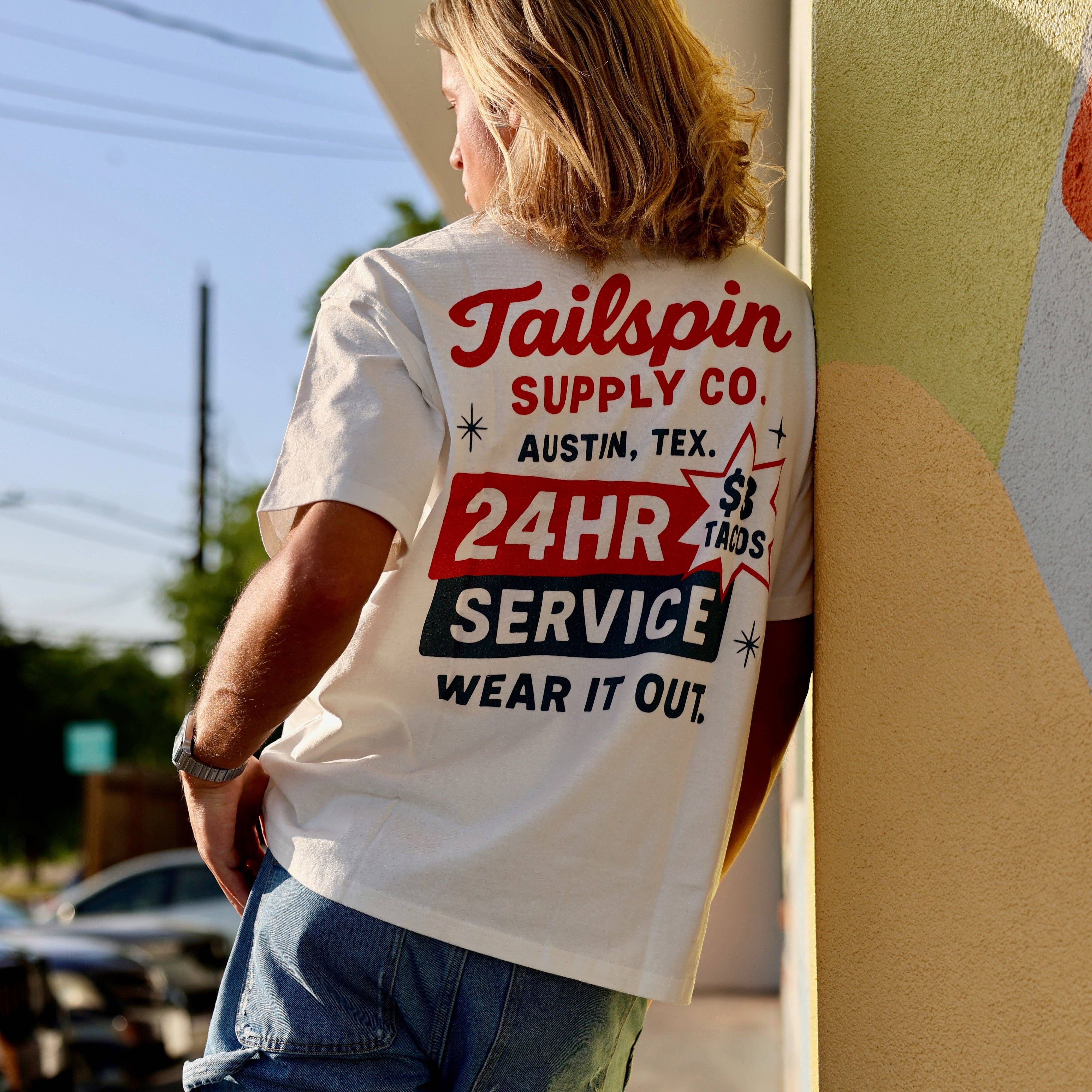 Né à Austin. Conçu pour les audacieux. Tailspin Supply Co. fabrique des t-shirts graphiques pour les amoureux des chiens, les rêveurs et ceux qui ne se prennent pas trop au sérieux. Nous mélangeons un design rétro-moderne avec l'attitude texane pour créer des vêtements qui sont à parts égales personnalité et punchline. PORTEZ-LE FIÈREMENT.