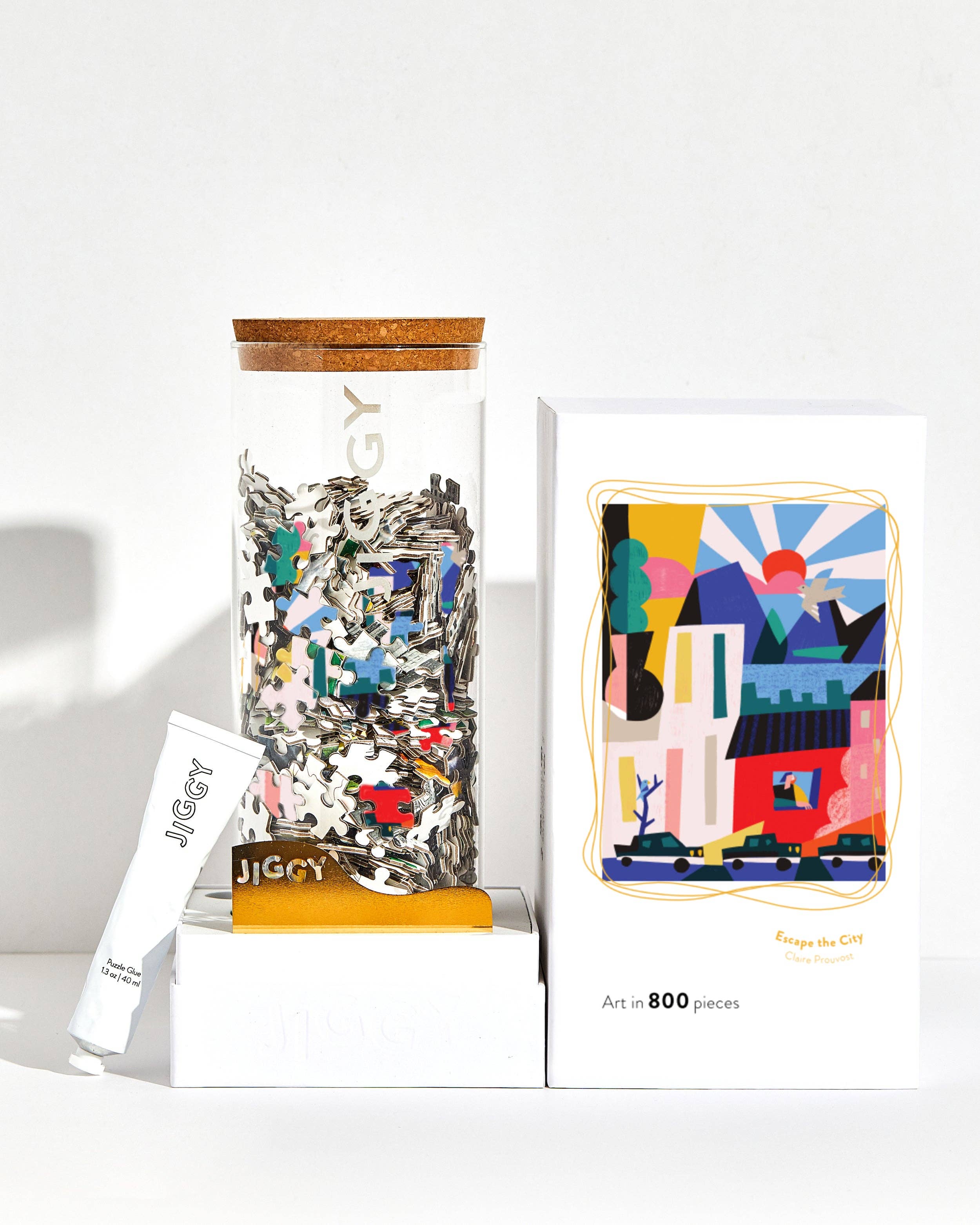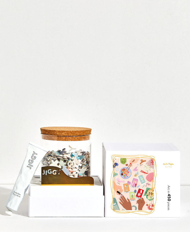 JIGGY est une nouvelle société de puzzle fondée par des femmes qui réinvente l'humble puzzle. Mettant en vedette des artistes féminines émergentes, des emballages durables et élevés, et de la colle de puzzle spécialement formulée, les puzzles JIGGY sont de l'art - en pièces. Il y a 5 ans, je travaillais 24/7 en tant que premier employé chez TheKimm et je commençais à faire des puzzles comme ma méditation et me détendre tous les soirs, mais les dessins étaient tellement obsolètes (et franchement boiteux !). J'ai commencé à imaginer un nouveau genre de puzzle, un puzzle qui serait beau pour le faire et la décoration :) J'ai organisé des œuvres d'artistes féminines émergentes du monde entier (qui reçoivent un pourcentage de chaque vente), réinventé l'emballage et la présentation, et lancé avec notre première collection en novembre !