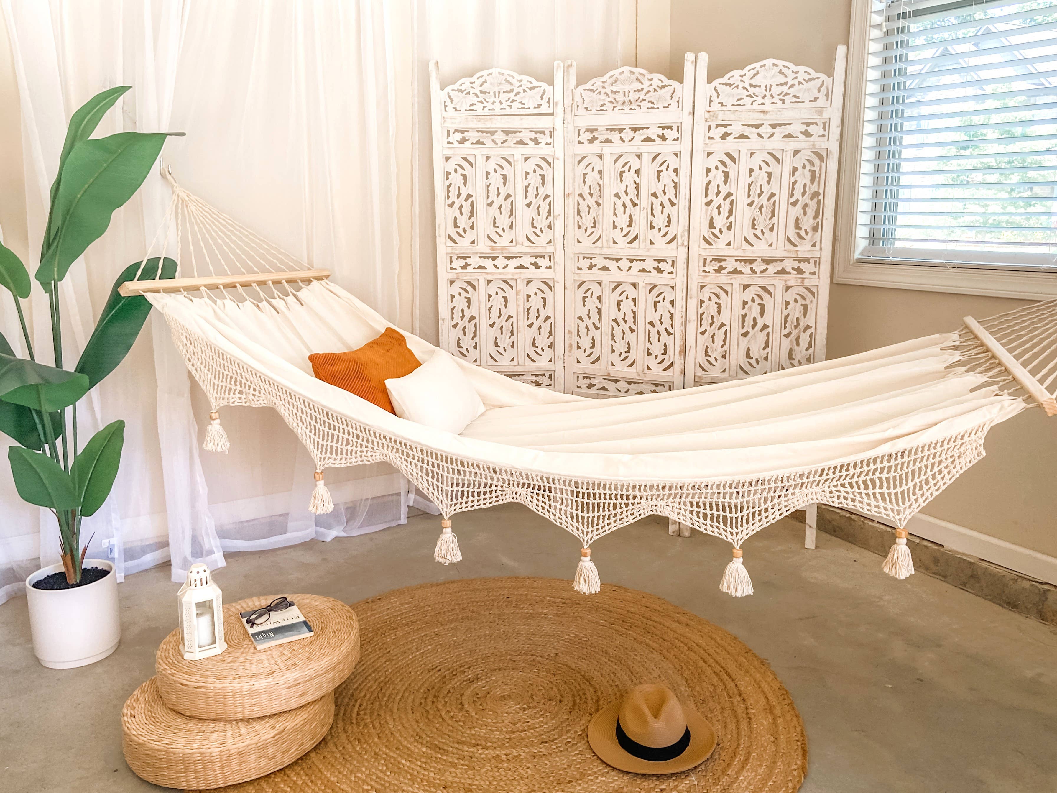Limbo Imports Hammocks propose des hamacs fabriqués de manière durable à tous dans le monde entier. Nous sommes une entreprise sociale fondée par des femmes située dans la belle ville d'Atlanta, en Géorgie. Notre entreprise a été créée par notre fondatrice Ana dans l'idée de célébrer son héritage salvadorien. Elle avait pour vision de partager des hamacs artisanaux avec le marché mondial. Tous nos hamacs sont 100 % coton et fabriqués à la main de manière éthique au Salvador et importés aux États-Unis. Nous utilisons des matériaux de première qualité et offrons une qualité et un savoir-faire de haute qualité dans toutes nos pièces. Notre mission est de concevoir et de créer de magnifiques hamacs et balançoires boho-modernes tout en conservant le processus artisanal traditionnel.