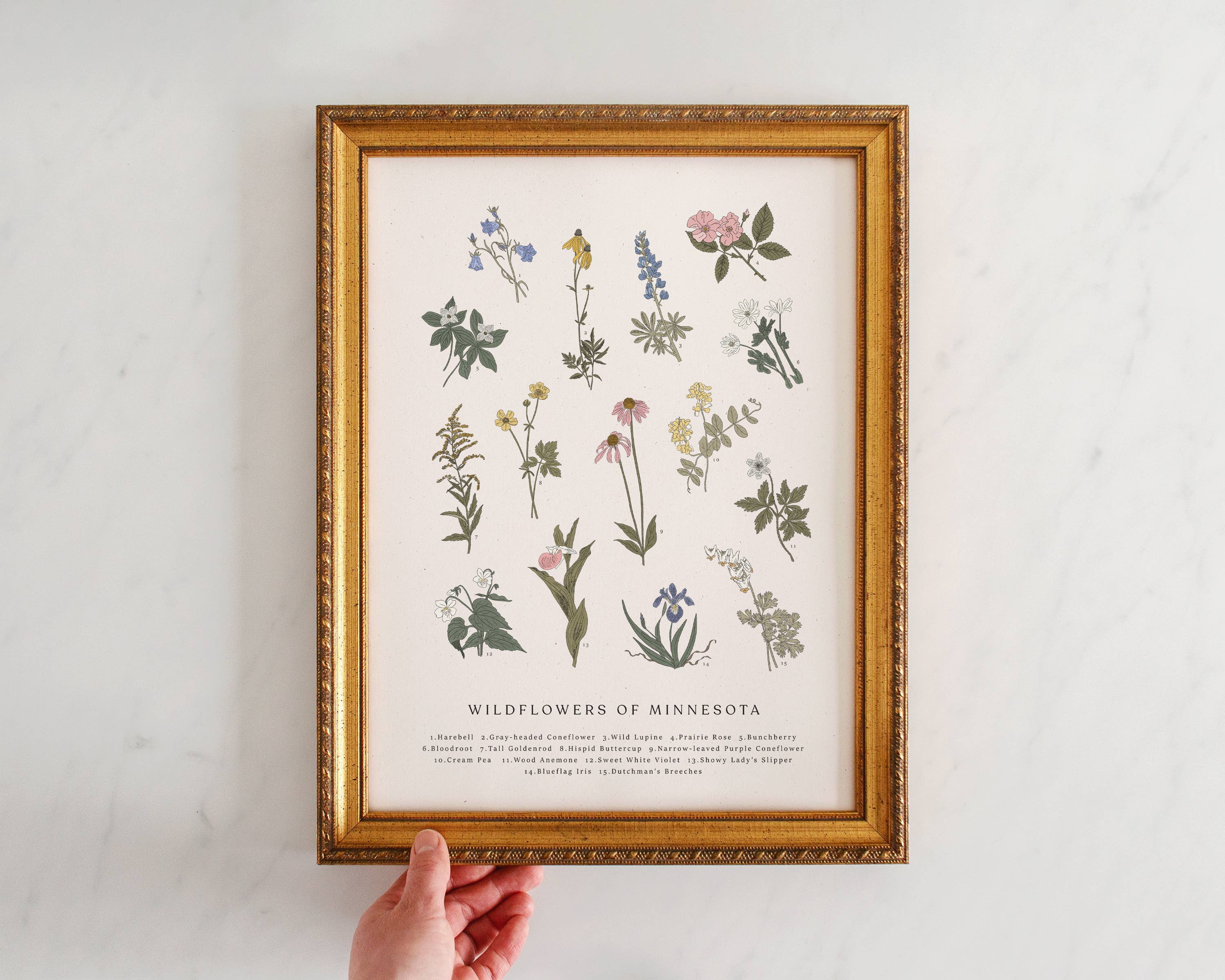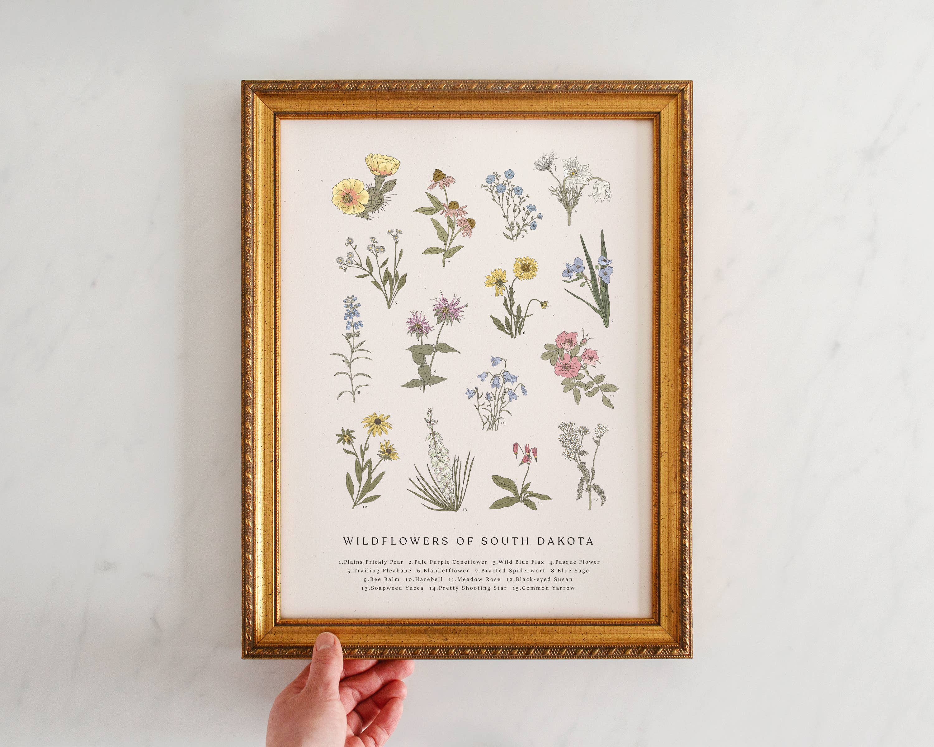 J'ai créé ma première impression artistique de fleurs sauvages après avoir vécu en Alaska et identifié les fleurs sauvages que j'ai trouvées lors de mes randonnées. Depuis, j'ai lentement ajouté d'autres états. La pièce d'art parfaite pour se souvenir d'un état préféré !
