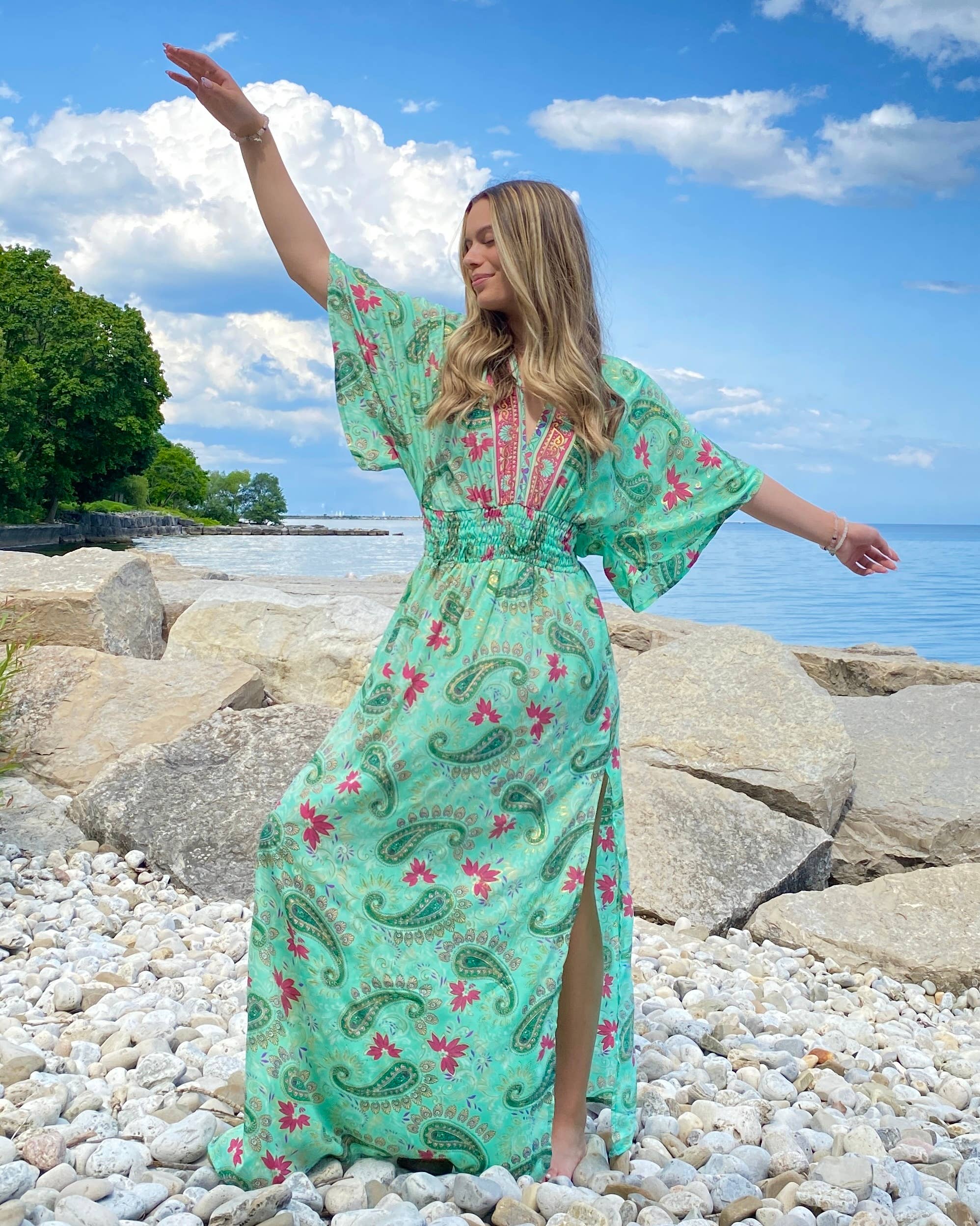 Guru est une marque de vêtements 100 % durable qui crée une mode unique et vibrante de qualité avec une touche bohème. Guru est conçu par le Canada et s'est engagé à respecter les principes du commerce équitable et une production durable de façon éthique à l'aide de saris à cycle supérieur. Kathryn Boese, propriétaire et conceptrice de Guru, collabore avec des artisans locaux du Rajasthan, de la conception à la production. Saris indiens vintage et tissus en fin de rouleau. Elle a fondé Guru il y a 2 décennies avec le désir de créer des vêtements durables pour les femmes et de soutenir des boutiques indépendantes. Les saris à vélo ont une histoire incroyable. Notre équipe en Inde collecte chacun de nos saris Rasgulla de haute qualité en troquant avec des femmes dans des villages indiens et en échangeant chaque jour des articles essentiels contre leurs saris autrefois aimés. Guru les refaçonne ensuite pour vous ! Les créations de mode individuelles sont créées pour des femmes comme vous, qui respectent le style unique et le mouvement durable.