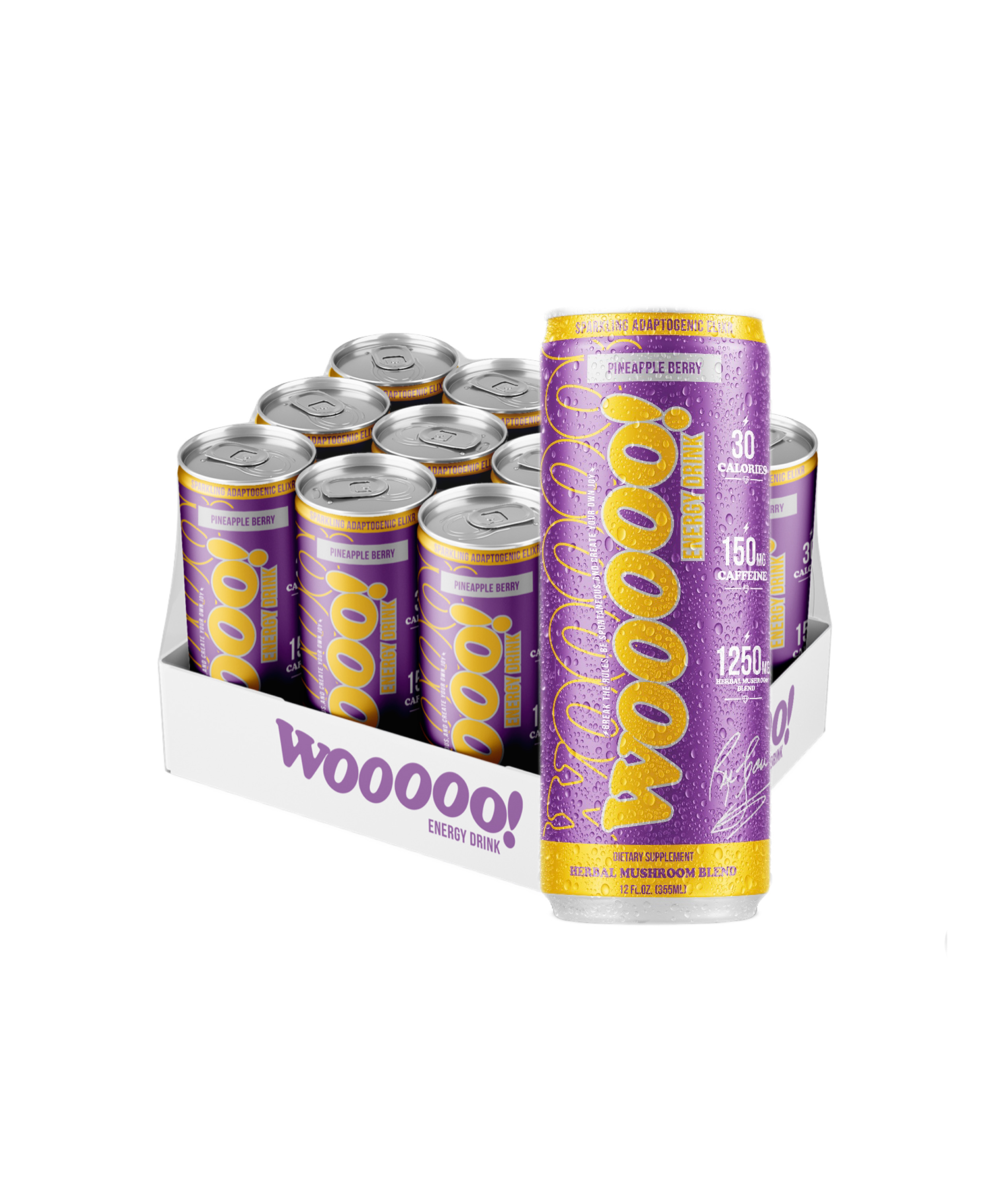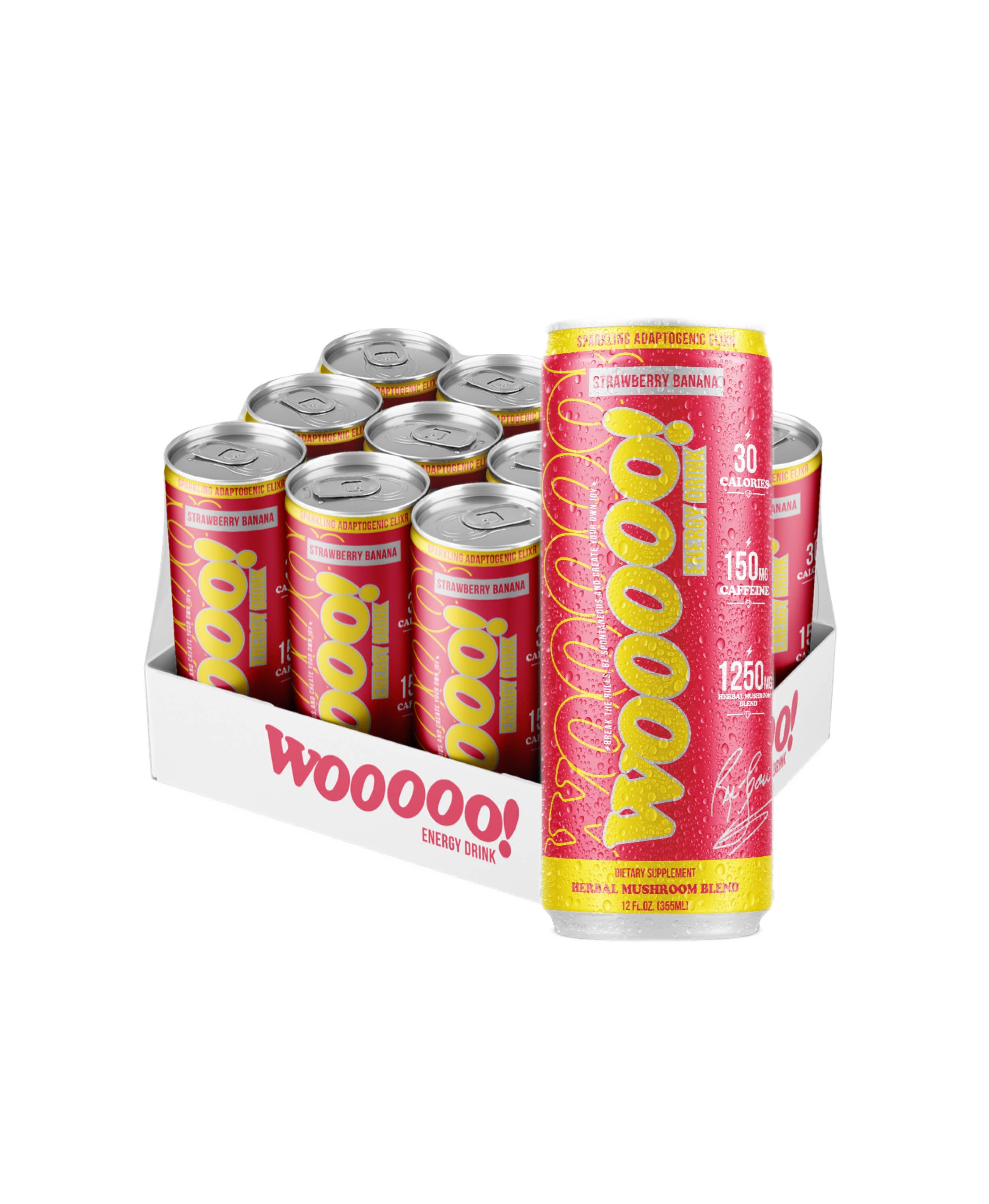 L'élixir adaptogène pétillant de WOOOOO Energy est fabriqué avec des antioxydants naturels, des nootropiques et de la caféine naturelle qui offrent des heures d'énergie et de concentration soutenues, sans nervosité, mais SANS LE COUP DE POMPE ! WOOOOO ! Pour la victoire !!!