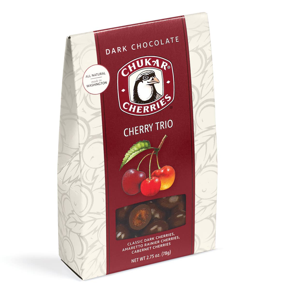 • La fondatrice Pam Montgomery a été la pionnière du séchage naturel des cerises sans sucre ajouté dans les années 1980 dans le verger de cerisiers de sa famille à Prosser, dans l'État de Washington. • Au cours des 35 dernières années, nous avons noué des relations avec les agriculteurs locaux afin de fournir des cerises mûries sur arbre de choix. Nous nous approvisionnons en chocolat pâtissier de style européen auprès d'un chocolatier familial de 6e génération pour superposer nos cerises séchées, nos baies et nos noix. • La région de Chukar est réputée pour sa grande qualité de cadeau, sa culture fruitière et sa façon de capturer le nord-ouest du Pacifique avec style et goût. • Les caractéristiques du produit incluent des ingrédients propres, sans conservateurs, sans sucre ajouté, certifiés biologiques et végétaliens. Presque tous les produits Chukar sont Kosher KOF-K et sont sans gluten. • Garanties Chukar : Produit frais, expédié rapidement • Chukar s'engage en faveur d'une fabrication responsable, d'un approvisionnement et d'un emballage durables et du renforcement de la communauté.