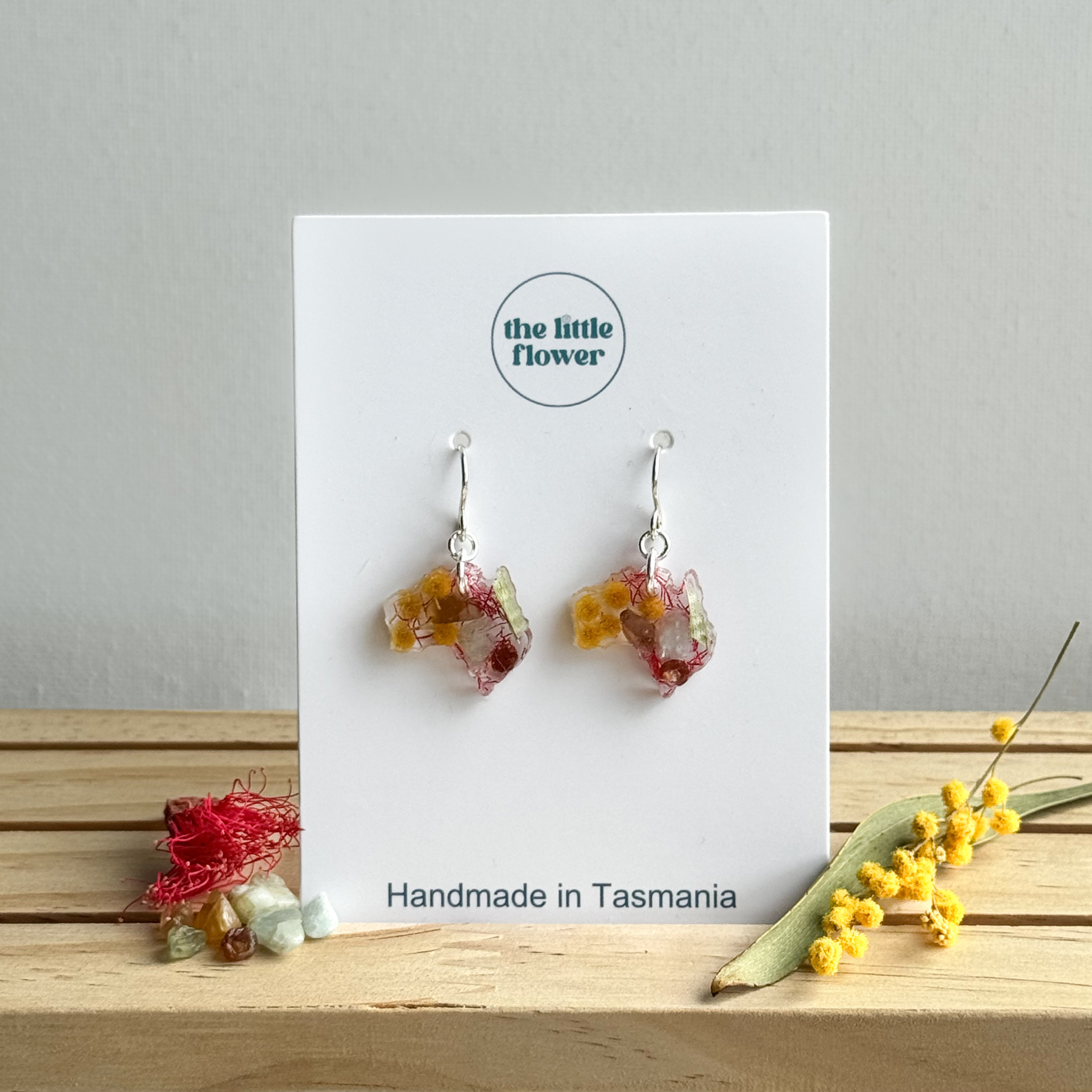 The Little Flower fabrique à la main de magnifiques bijoux floraux en résine à base de fleurs cultivées en Tasmanie, de fleurs indigènes et vivaces, notamment de l'acacia, des marguerites et plus encore. Finition en or et argent. À ce jour, The Little Flower Handmade a excellé dans la création de pièces significatives pour les mariages en utilisant des bouquets de mariée, présentés lors d'événements de design réunissant plus de 10 000 participants et présentés dans de nombreuses entreprises locales à travers la Tasmanie. Nous espérons que vous apprécierez nos bijoux autant que nous avons apprécié le processus de conception et de fabrication.