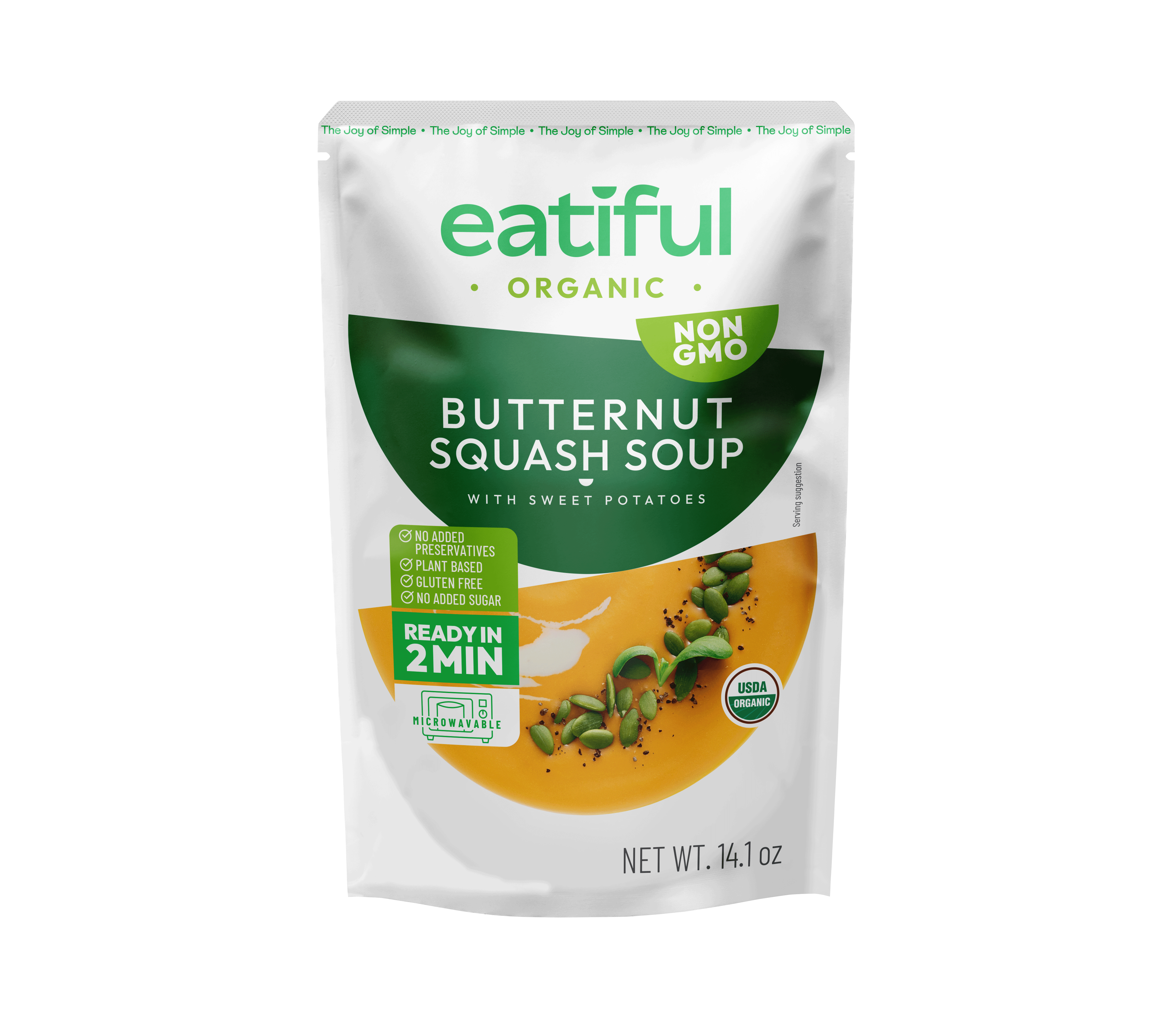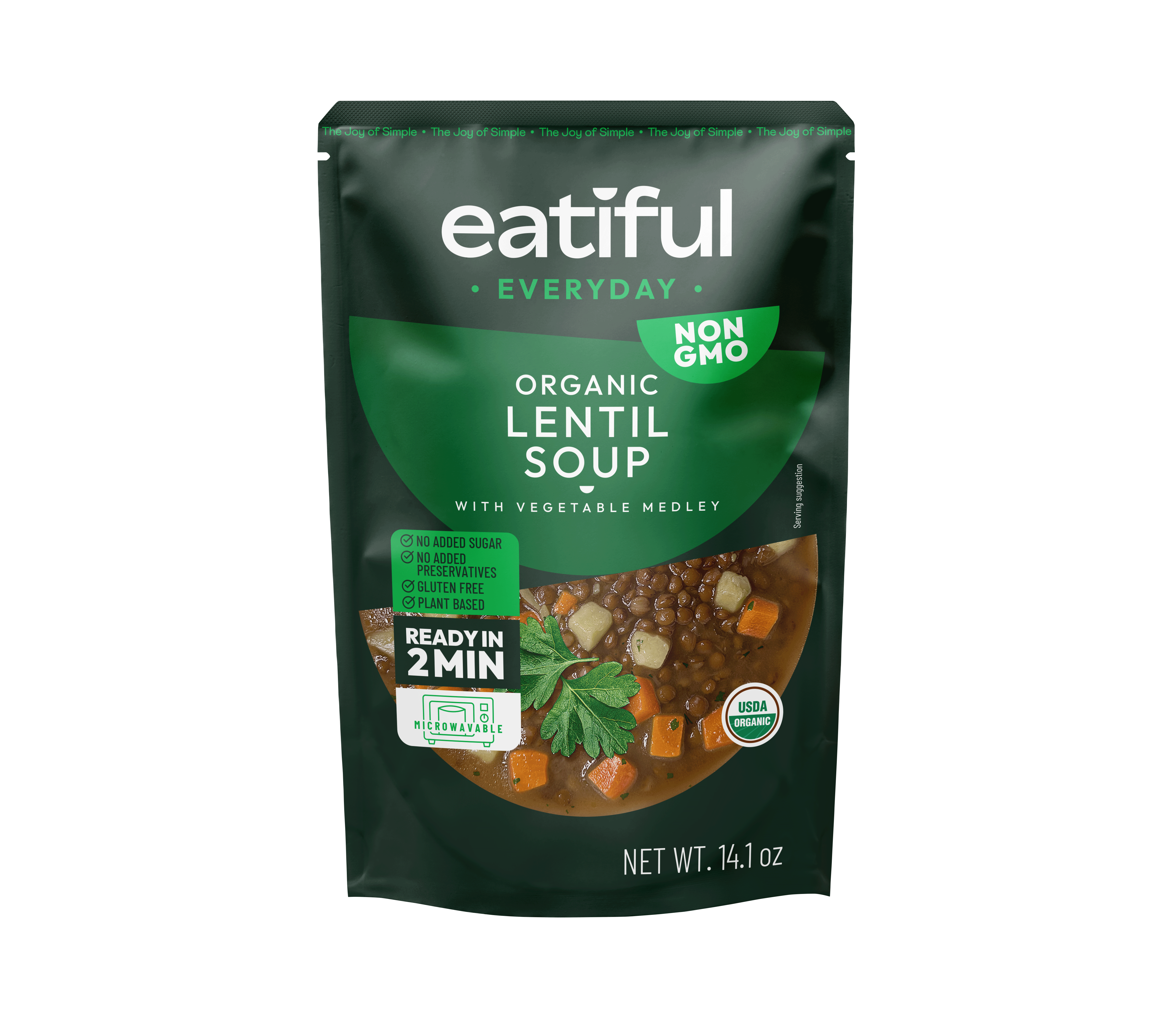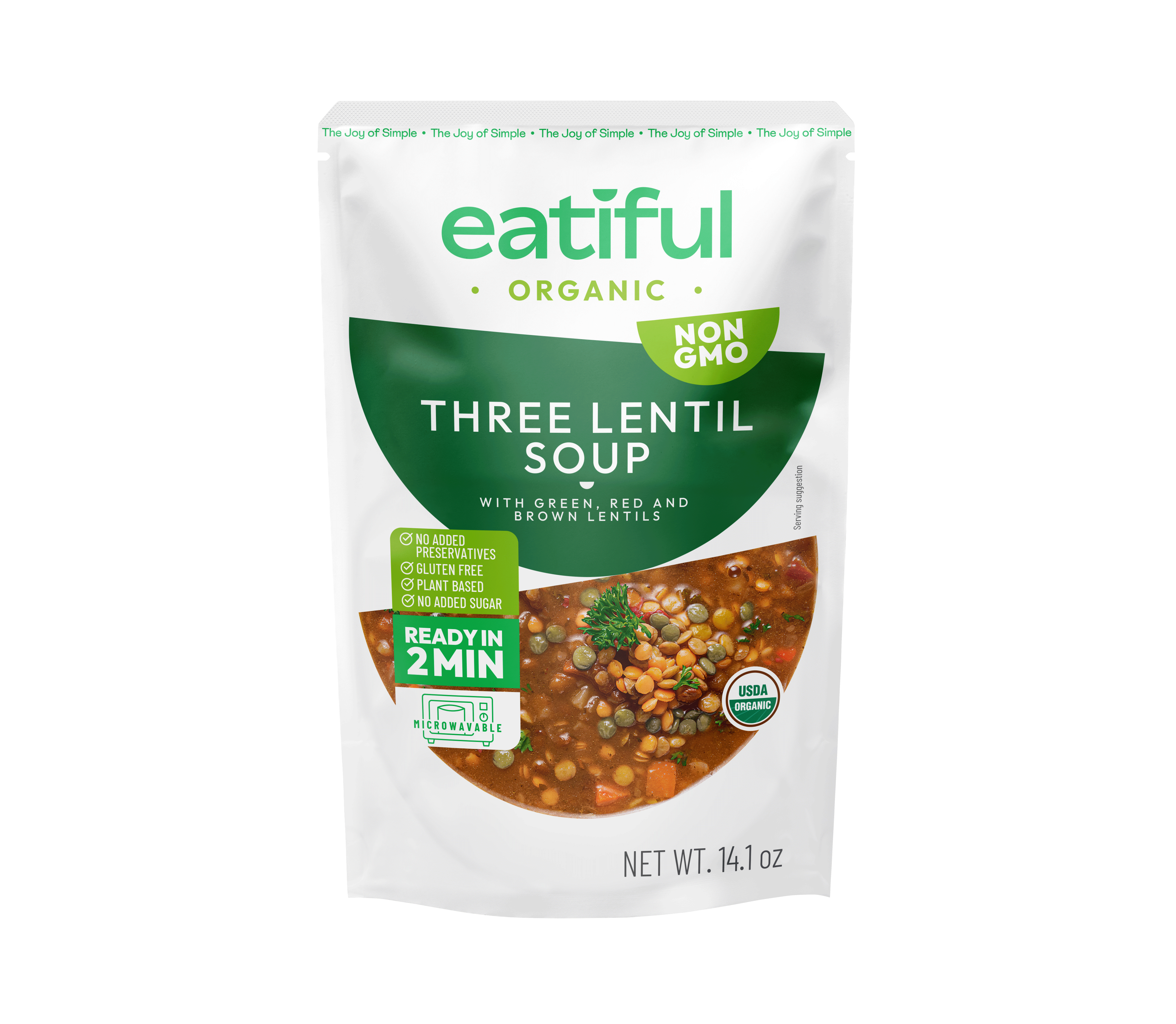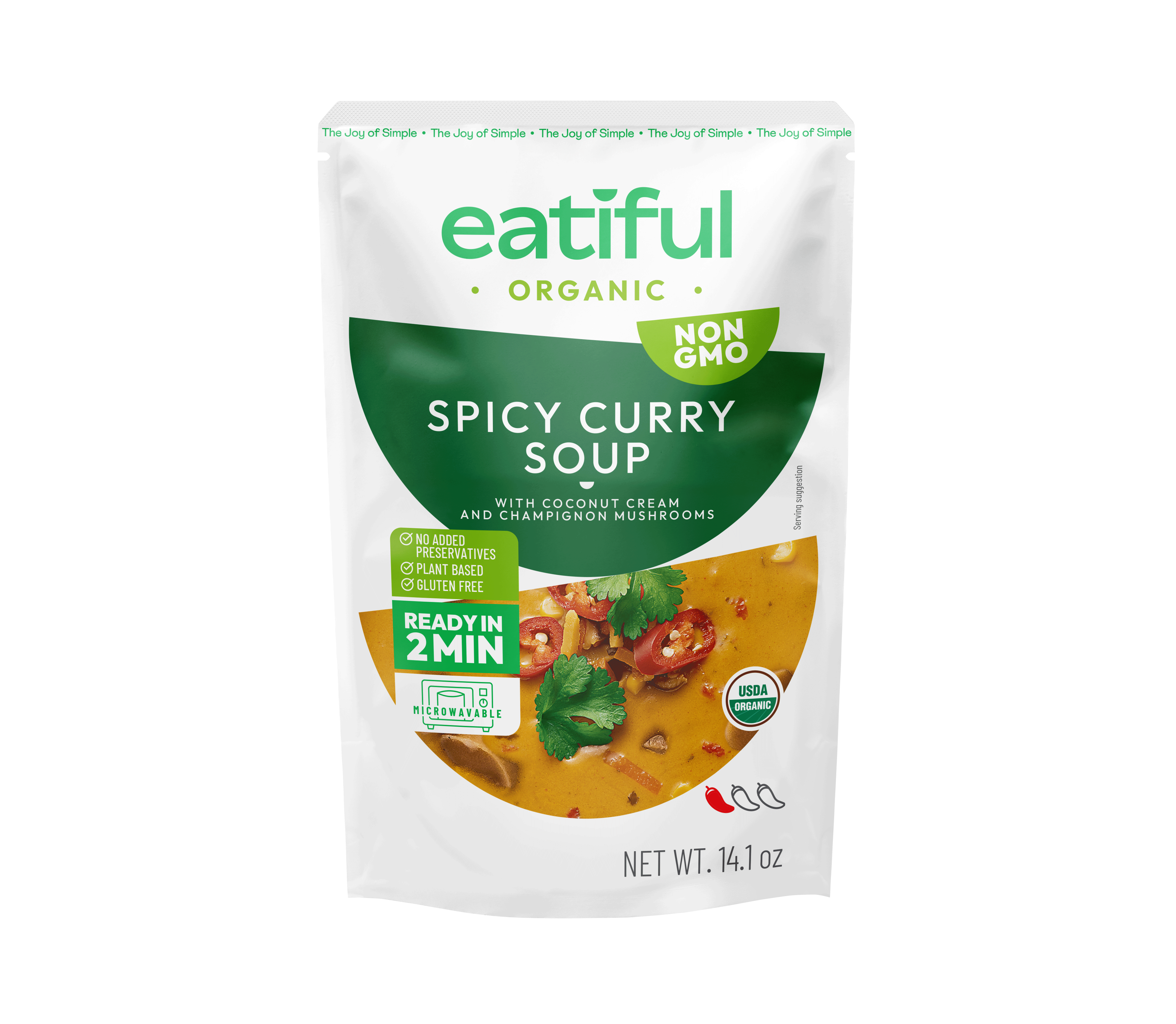 Eatiful propose une gamme premium de soupes et plats de curry biologiques, faits maison, à la fois nutritifs et délicieux. Conçus pour une commodité ultime, toutes les soupes et plats de curry Eatiful sont prêts à être consommés en deux minutes ou moins et sont conditionnés dans des sachets micro-ondables sans BPA qui génèrent seulement un tiers des émissions de carbone des boîtes et bocaux traditionnels. Chaque variété est certifiée biologique par l'USDA, sans gluten, et fabriquée sans ingrédients artificiels ni conservateurs. Nos soupes et currys sont entièrement à base de plantes, ne contenant aucun allergène majeur, viande ou produits laitiers. Ce qui nous distingue, c'est notre saveur audacieuse, faite maison, et nos recettes uniques—comme notre soupe de courge musquée, naturellement sucrée avec des patates douces au lieu de sucre raffiné, et notre soupe aux trois lentilles, qui mélange lentilles vertes, rouges et brunes pour une texture et un goût plus riches.