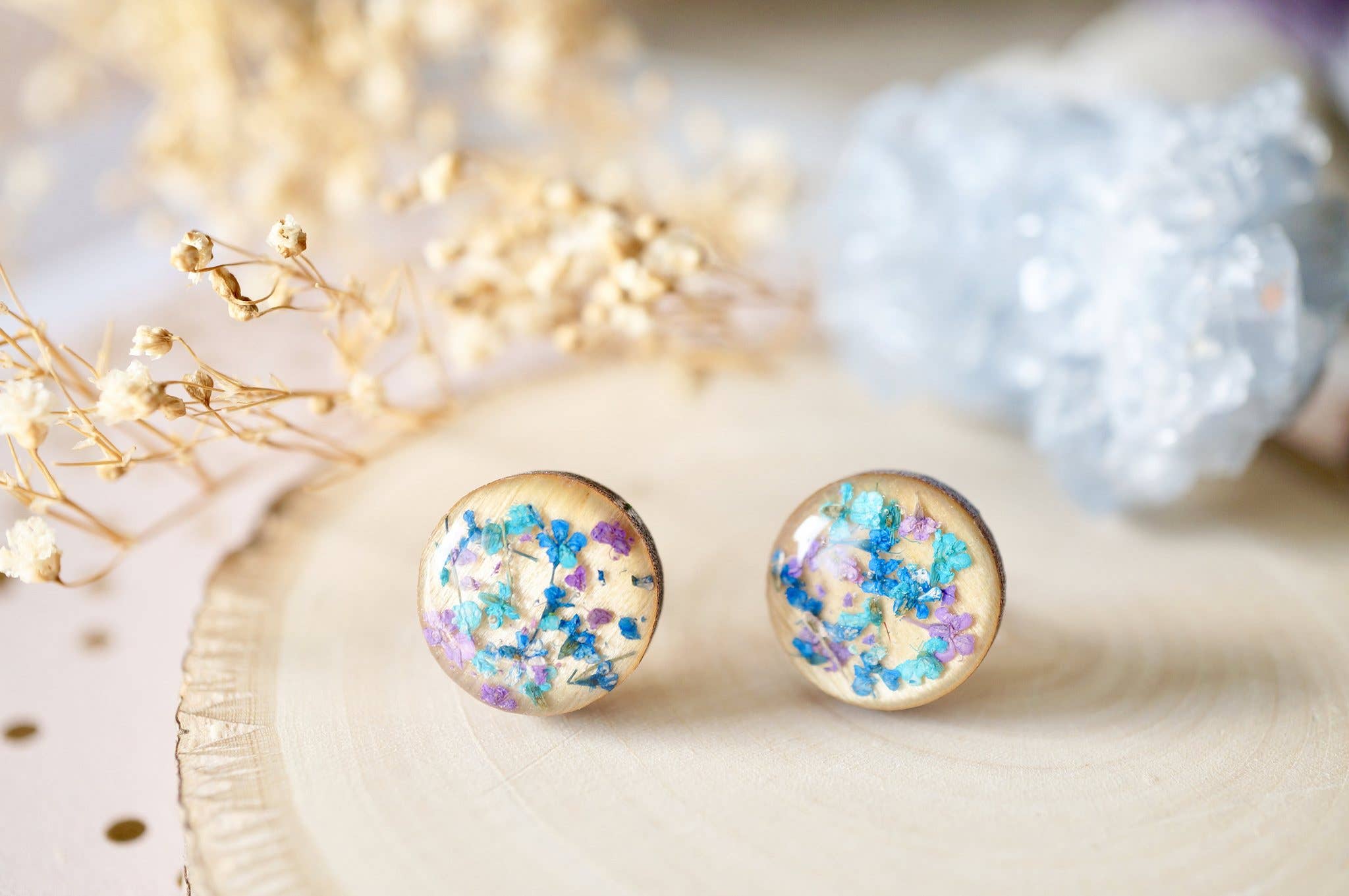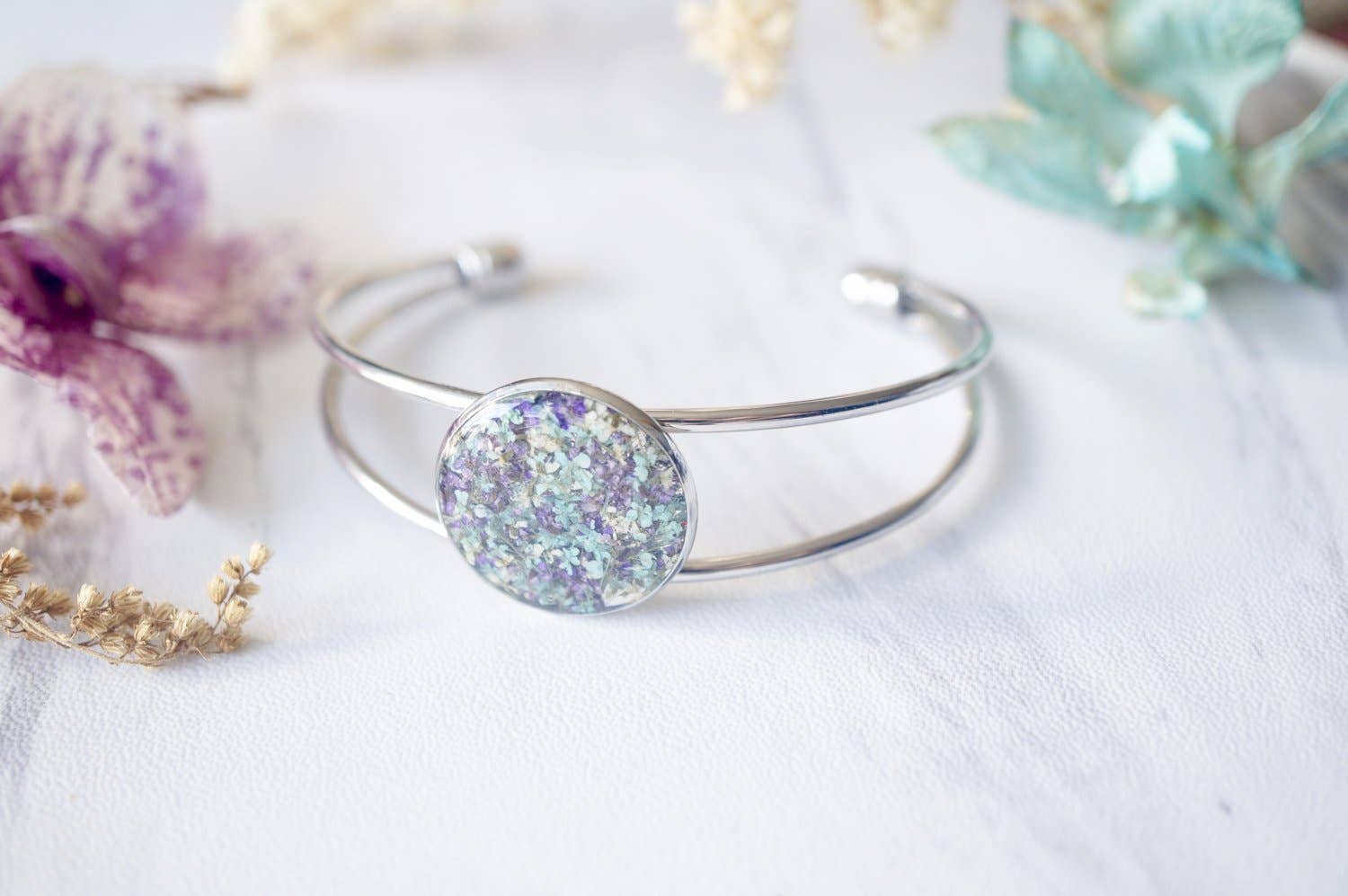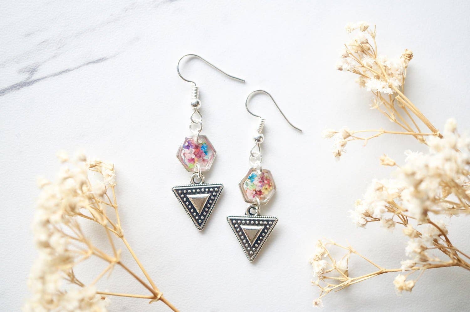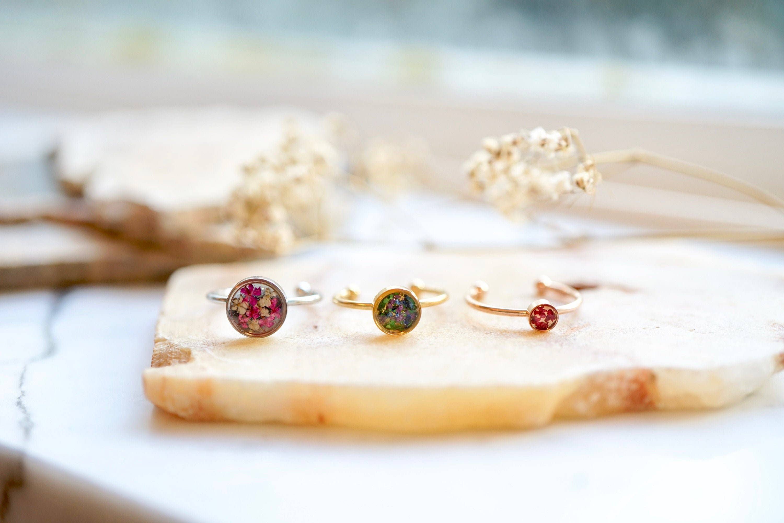 « Véritable bijou de fleurs séchées fait par deux sœurs à Miami. Portez la nature ! » Nos produits sont tous dotés de vraies fleurs séchées que nous trouvons, coupons, sèches et colorantes. Presque n'importe quel article peut être personnalisé ! Choisissez les couleurs que vous voulez. Nos bijoux offrent l'occasion de porter la nature préservée pour toute une vie. Toutes les boucles d'oreilles sont faites avec des fonds en acier inoxydable, parfaits pour les oreilles sensibles. Nos colliers et bagues sont fabriqués en alliage de zinc, un métal qui est également idéal pour les peaux sensibles. Pour maintenir nos prix bas, nous n'utilisons pas d'argent sterling ou d'or 14 carats. Nous avons plus de 4000 ventes sur Etsy seul, et vendons sur de nombreuses autres plateformes en ligne. Nos bijoux sont parfaits pour les femmes de tous âges. Si vous avez des questions sur nos produits, veuillez nous le faire savoir. Les articles sont fabriqués sur commande. Veuillez prévoir des délais de traitement plus longs. Nous vous remercions de votre compréhension.