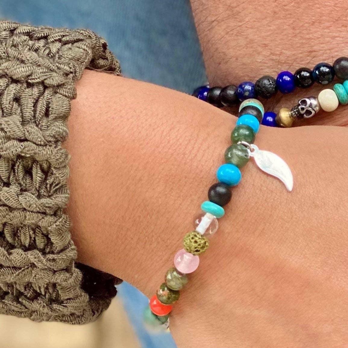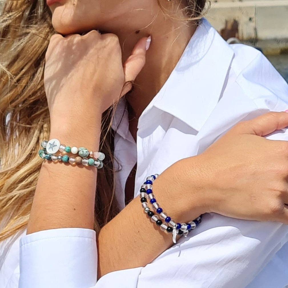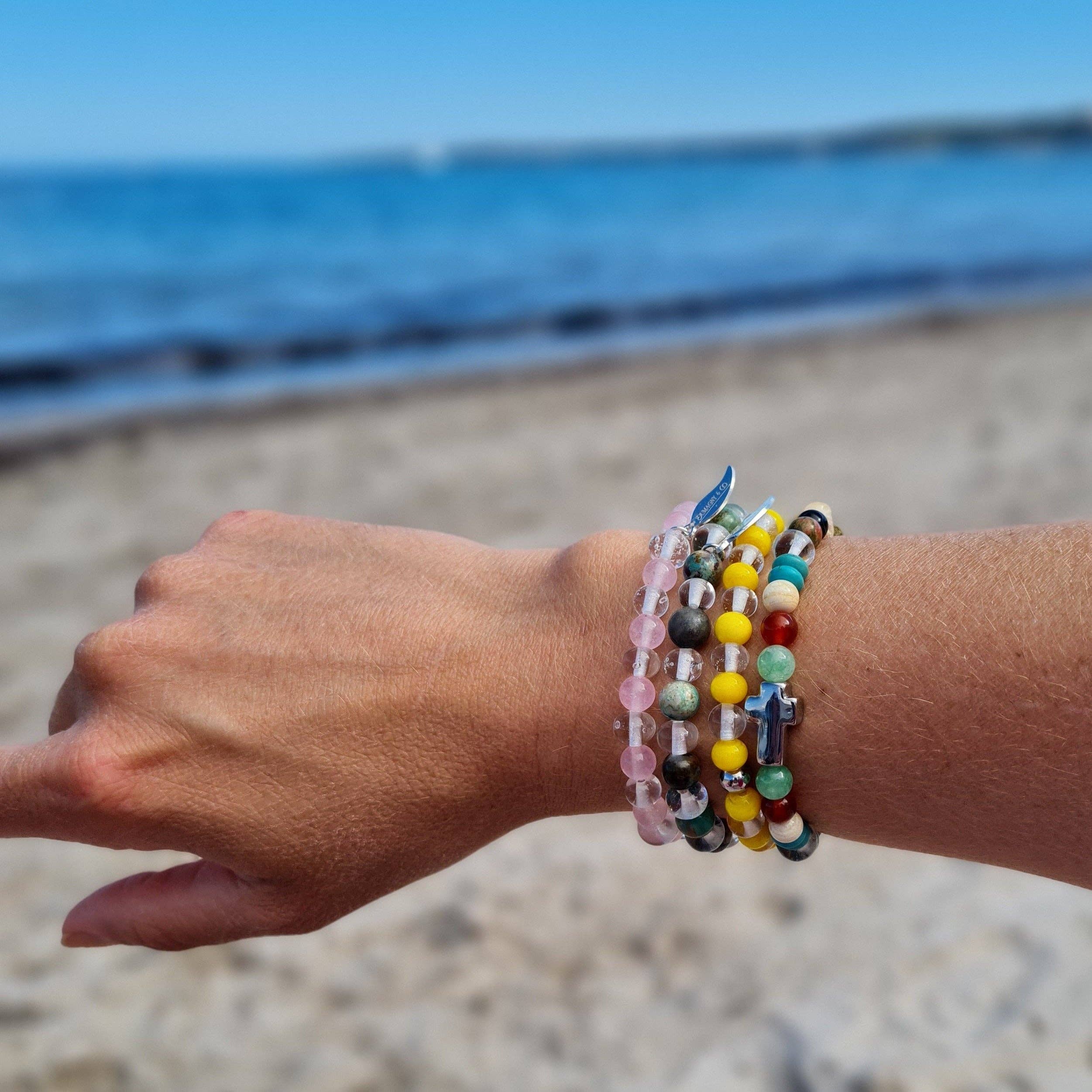 Bracelets en perles de verre issues de bouteilles de Champagne Dumagny & Co est une marque de bijoux lancée en 2021, à Cannes. Matière première originale et symbolique, les bouteilles de Champagne, une fois transformées, sont le premier ingrédient de ces bracelets pétillants. Dumagny met en avant le travail du verre et les assemblages de matières naturelles en proposant des bracelets haut de gamme et uniques à destination des hommes, femmes et enfants. Le verre s’est naturellement imposé comme la matière phare des créations. Avec d’infinies possibilités de provenances et de déclinaisons, il constitue leur premier atout, leur marque de fabrique. Dumagny & Co s’appuie sur le savoir-faire d’artisans français réputés, passionnés par leur métier, qui façonnent chaque perle de verre à la main pour un résultat lumineux et remarquable, qu’il s’agisse de verre de Murano aux multiples nuances, ou de verre recyclé. Chaque perle réalisée en atelier raconte une histoire. Une forme douce, arrondie, quelques bulles emprisonnées dans le verre rendent le bijou authentique et exceptionnel. Un large éventail de matières naturelles sont utilisées en complément du verre, pierres fines (jade, améthyste, quartz, tourmaline, aigue-marine, etc.), bois d’ébène, nacre ou encore pierre de lave. Ces bracelets colorés deviendront assurément l’accessoire « must have » de la rentrée.