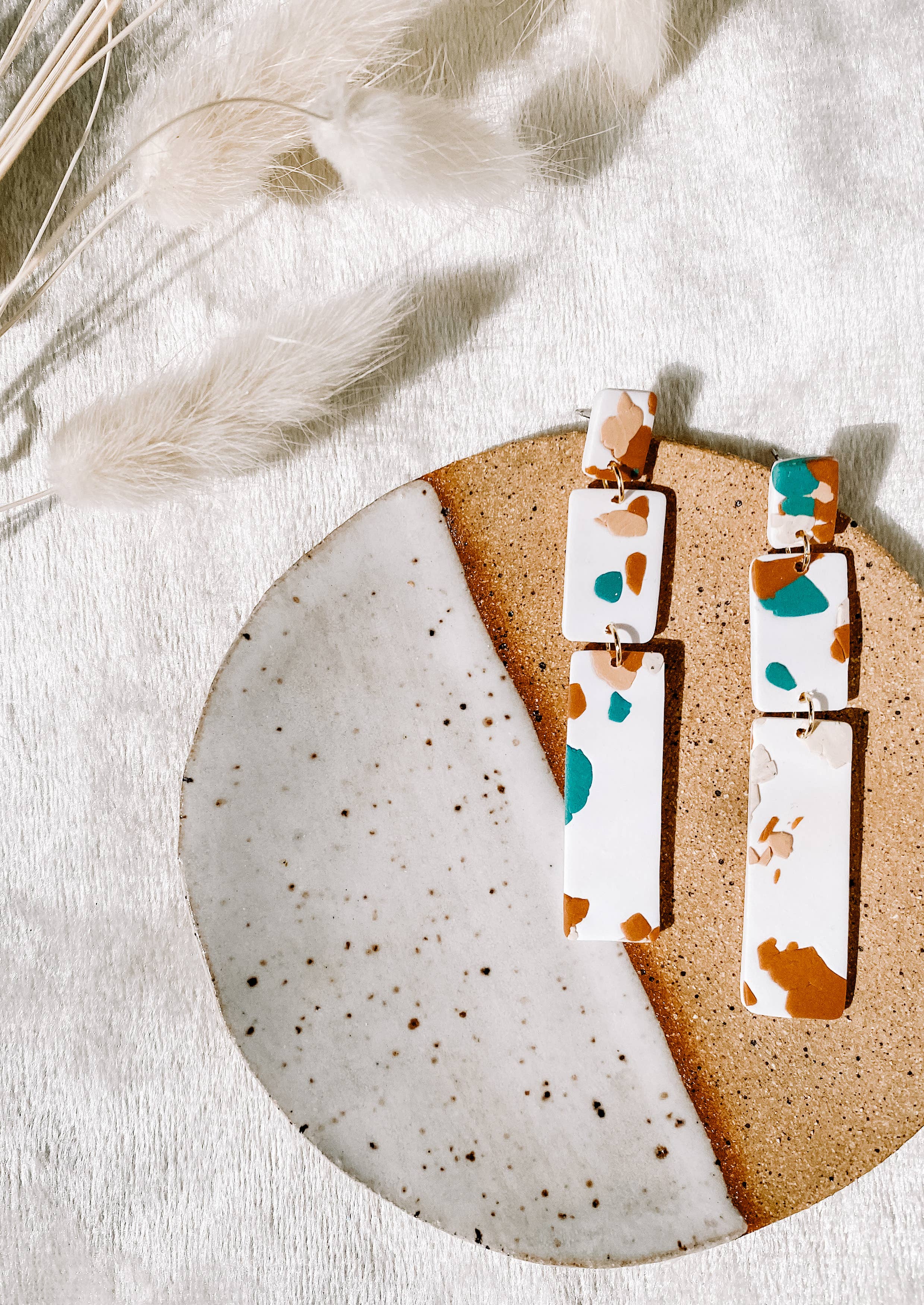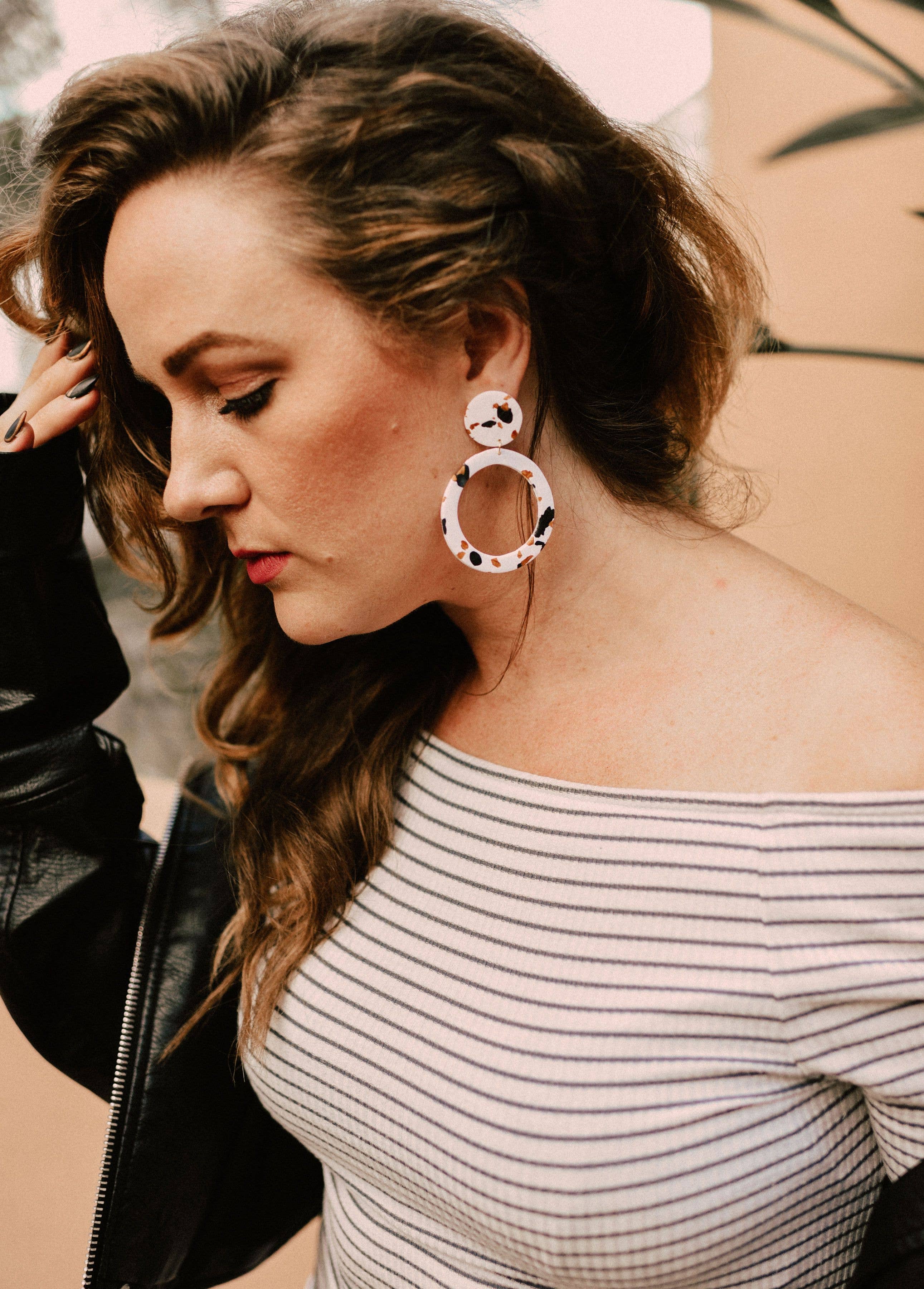 TOUTES LES BOUCLES D'OREILLES SONT FABRIQUÉES SUR COMMANDE ✨ Natalie a commencé à fabriquer des boucles d'oreilles en argile il y a près de quatre ans après être tombée amoureuse de ce médium à l'université. Trois mois après l'obtention de son diplôme, et après une soirée œnologique encourageante entre copines, elle a lancé Corvega ! Ce qui n'était qu'un hobby est devenu une activité à part entière. Elle travaille actuellement à temps plein dans la conception graphique pendant la journée et joue avec de la terre battue la nuit. Corvega s'efforce d'aider les femmes à sourire et à se sentir plus belles ♡