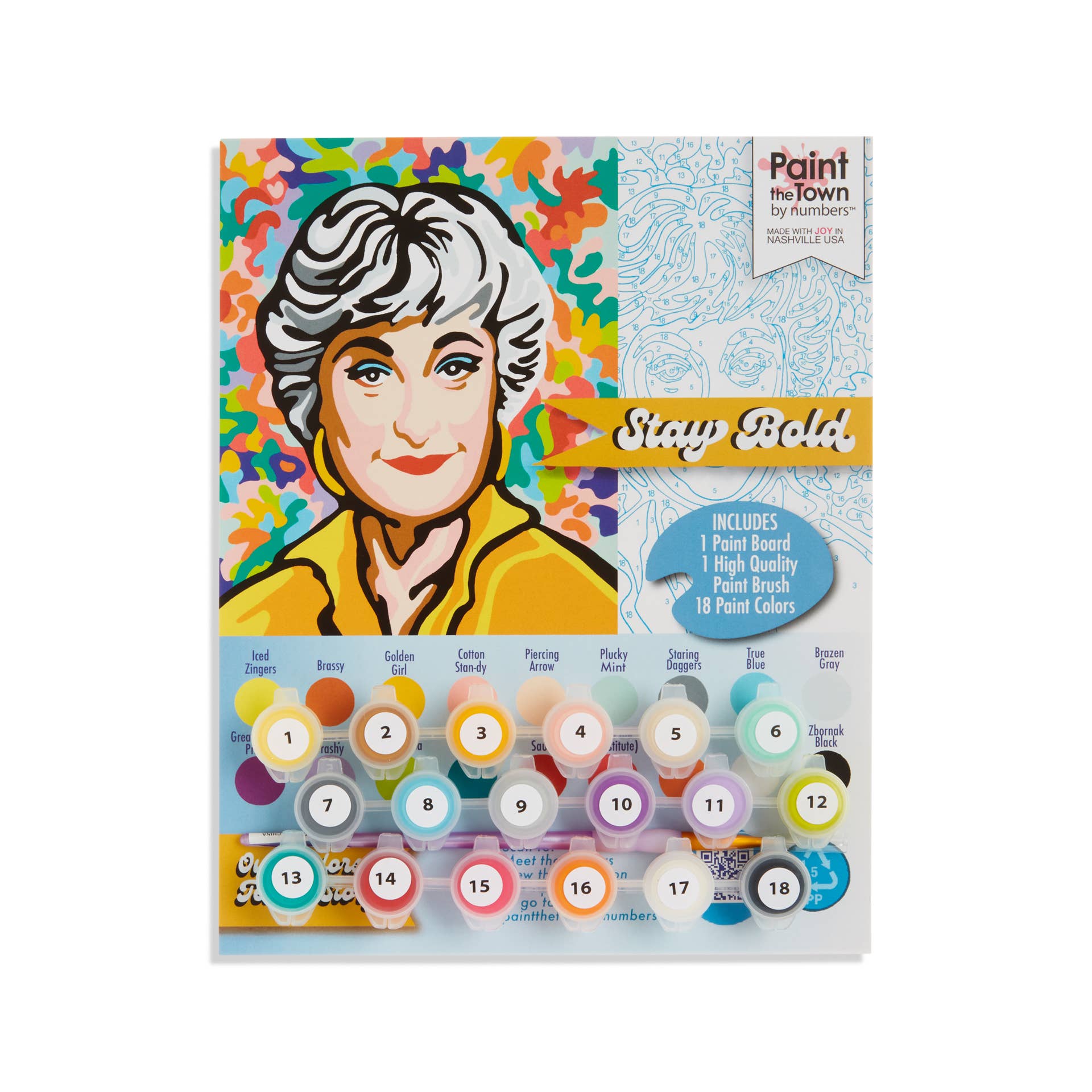 Paint the Town by Numbers conçoit et produit des kits de peinture vintage inspirés des peintures par numéros avec une touche moderne. L'un de nos principaux objectifs est de connecter les personnes de tous âges avec la joie de peindre ! Nous croyons fermement qu'il ne peut y avoir trop de couleurs, tout en nous efforçant d'aider à raconter l'histoire du sujet du design à travers des noms de couleurs amusants et informatifs. Chaque kit est conçu à la main par Camilla Spadafino, une enseignante d'art depuis vingt ans dans les écoles publiques de Metro Nashville. Ses dessins faits à la main sont imprimés, assemblés et expédiés depuis notre atelier d'East Nashville. Nous utilisons de la peinture acrylique de haute qualité fabriquée en Amérique, et chaque kit contient un pinceau Royal and Langnickel de haute qualité. Contrairement à de nombreux autres kits de peinture par numéros sur toile, notre kit de peinture par numéros propose un panneau de peinture identique aux kits de peinture par numéros américains du milieu du siècle.