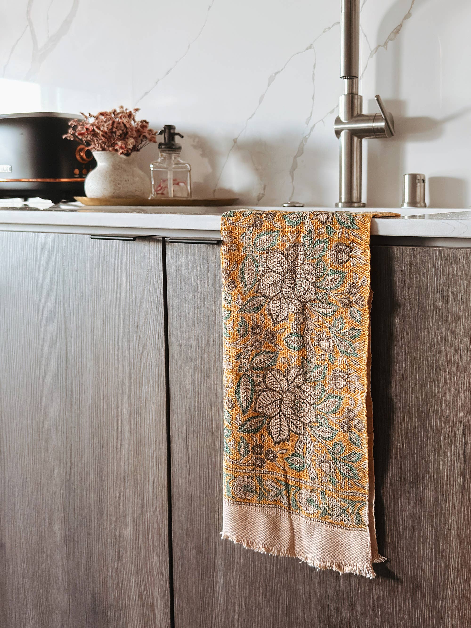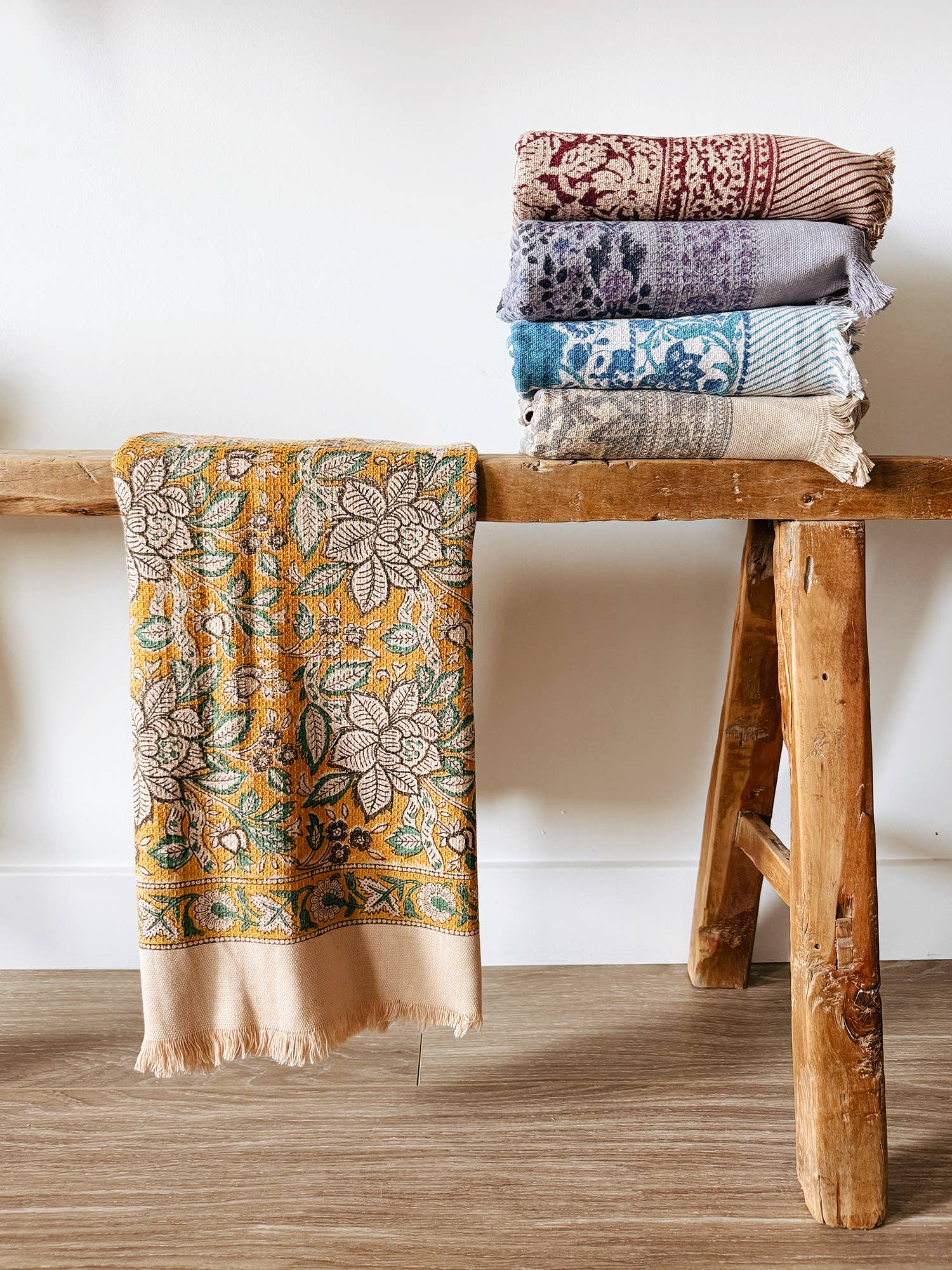 Inspirés par nos lieux préférés à travers le monde et par notre héritage indien, nous concevons des modèles de mode et des textiles de maison vibrants et colorés qui apportent confort et joie à notre vie quotidienne. Tous nos modèles sont imprimés à la main par des artisans à l'aide de blocs de bois sculptés à la main.