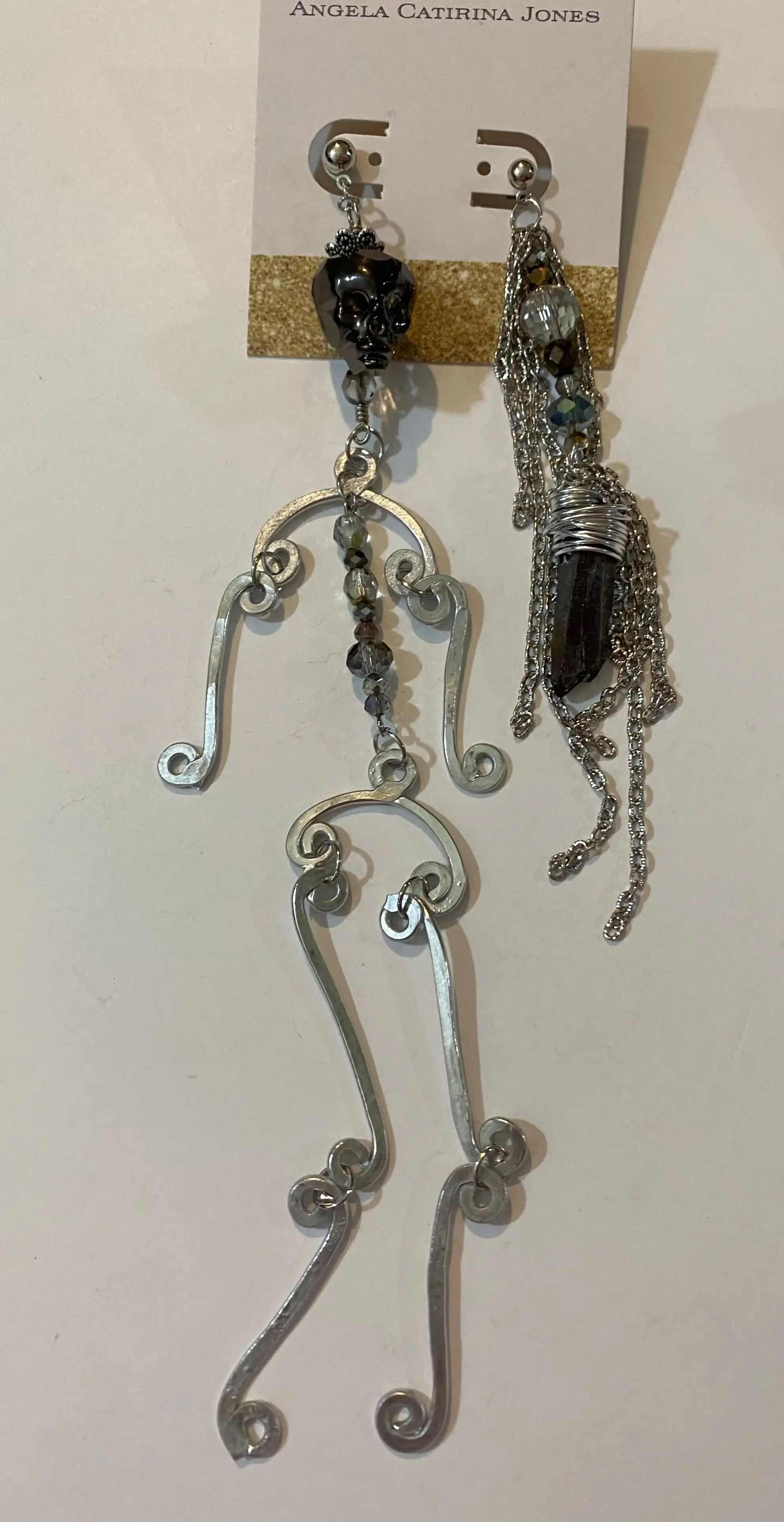 Fondé par la sculptrice et artiste Angela Catirina Jones, notre studio est connu pour la production de bijoux exceptionnels de qualité professionnelle. Inspirée par les œuvres d'Alexander Calder et d'innombrables artistes tout au long de sa carrière, Angela Catirina s'efforce de promouvoir le commerce de détail traditionnel grâce à une collection organisée et axée sur l'art qui est abordable pour le commerce de détail grand public. Chaque année, nous produisons environ 26 000 bijoux martelés à la main et enroulés en fil métallique, ainsi qu'une vaste gamme de bijoux en perles de haute qualité. Nos métaux durables sont proposés dans plus de 2 douzaines de couleurs et la plupart des modèles sont disponibles en plusieurs tailles. Sans nickel, sans plomb et hypoallergénique. Nous proposons également sur demande votre choix de câbles français, de câbles de studio, de poteaux ou de câbles à clipser (en supplément). Angela Catirina explique que son objectif a toujours été de faire en sorte que chaque cliente qui se présente dans un magasin, quel que soit son âge, son origine ethnique ou son budget, trouve quelque chose de sa collection qu'elle aime et souhaite acheter.