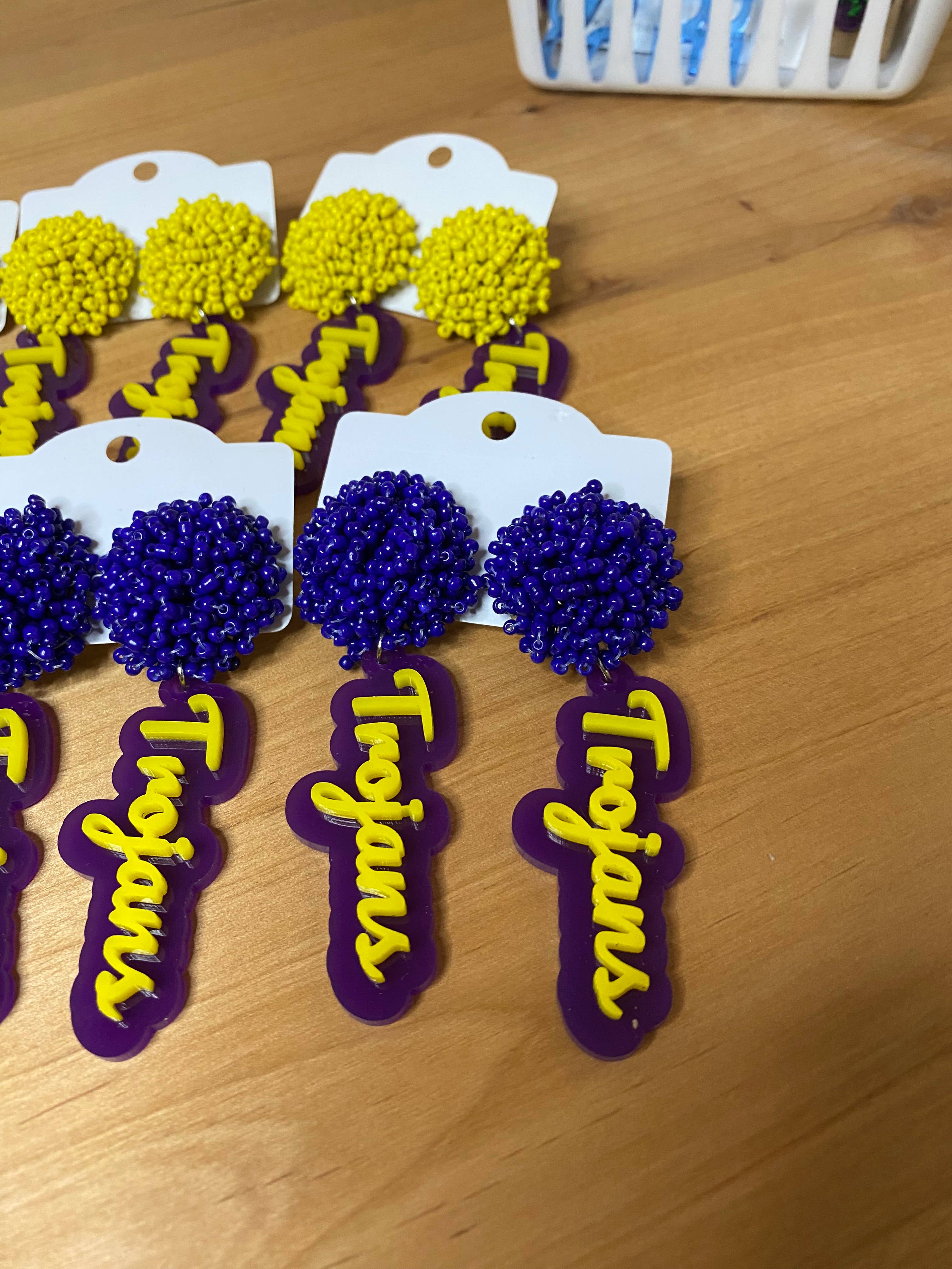 J'adore concevoir des boucles d'oreilles et l'utilisation du laser m'a permis de les donner vie ! Cela me permet d'utiliser mon côté créatif et de développer des méthodes organiques pour tacher et sceller chaque article. Nous n'utilisons pas de taches ou de peintures. Nous utilisons divers cafés, thés et même écorces végétales pour tacher notre bois. Il est scellé à l'aide d'un mélange exclusif d'huiles d'olive biologiques et tamponné à une belle finition.