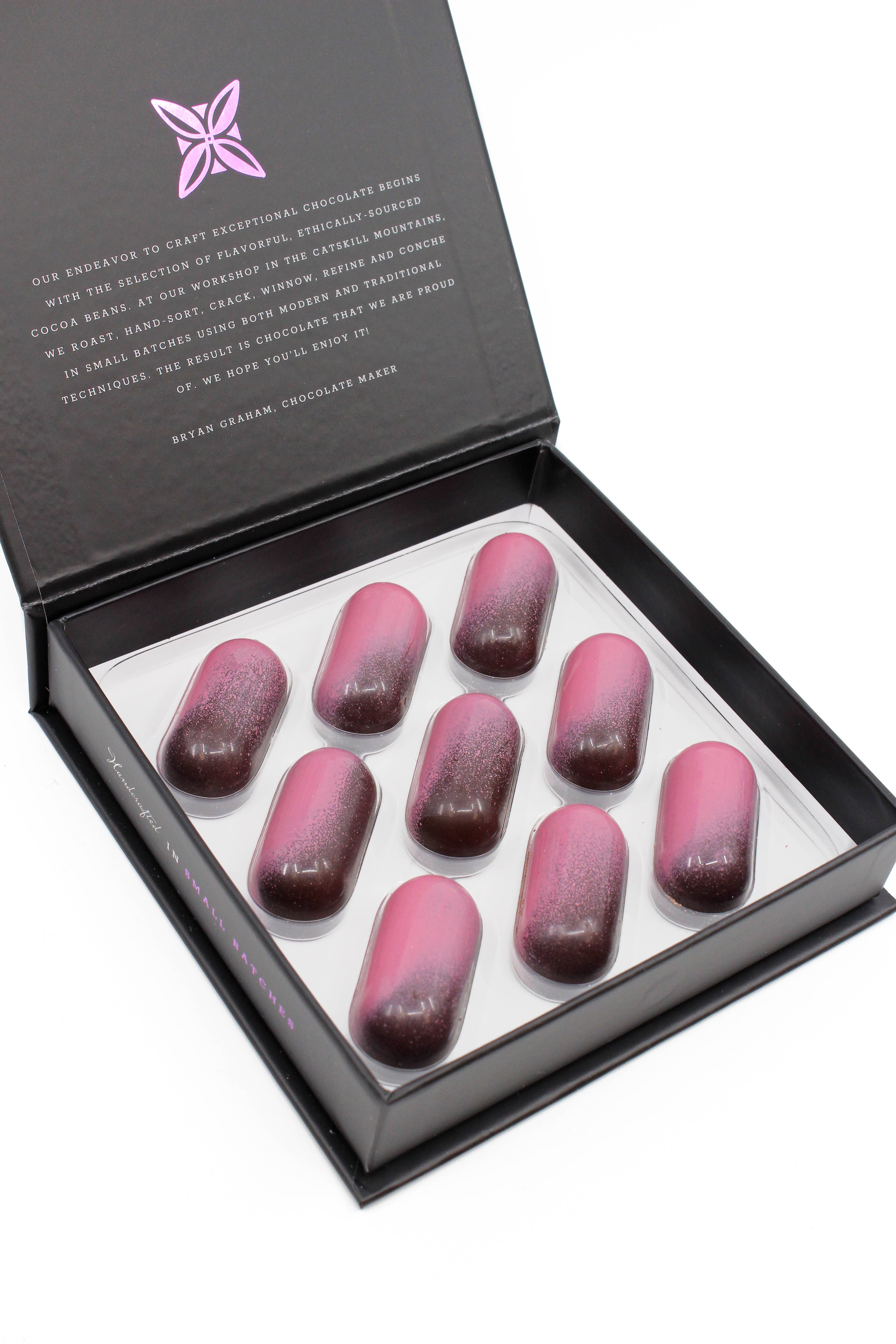 En marchant le long de la plage un jour, le nom apparut clairement dans l'esprit de Bryan Graham. Un rêve réalisé. Le point où quelque chose porte ses fruits. Pour ce boulanger, chocolatier et pâtissier, c'était les deux. Des années de travail pour la réalisation de sa propre confiserie se sont cristallisées lors d'une aventure en voyage routier avec sa femme et partenaire d'affaires, Dahlia. Les deux ont fait un saut de foi en 2010 pour errer aux États-Unis, en partie, pour chercher l'inspiration tandis qu'ils cherchaient l'endroit où ils rêvent. Un rêve qui n'était qu'une graine, nourrie par l'engagement, l'artisanat et l'amour du chocolat, attaché par l'endroit parfait d'un couple : la maison. Fruition. Chocolat à barre fait avec amour et engagement dans les Catskills.