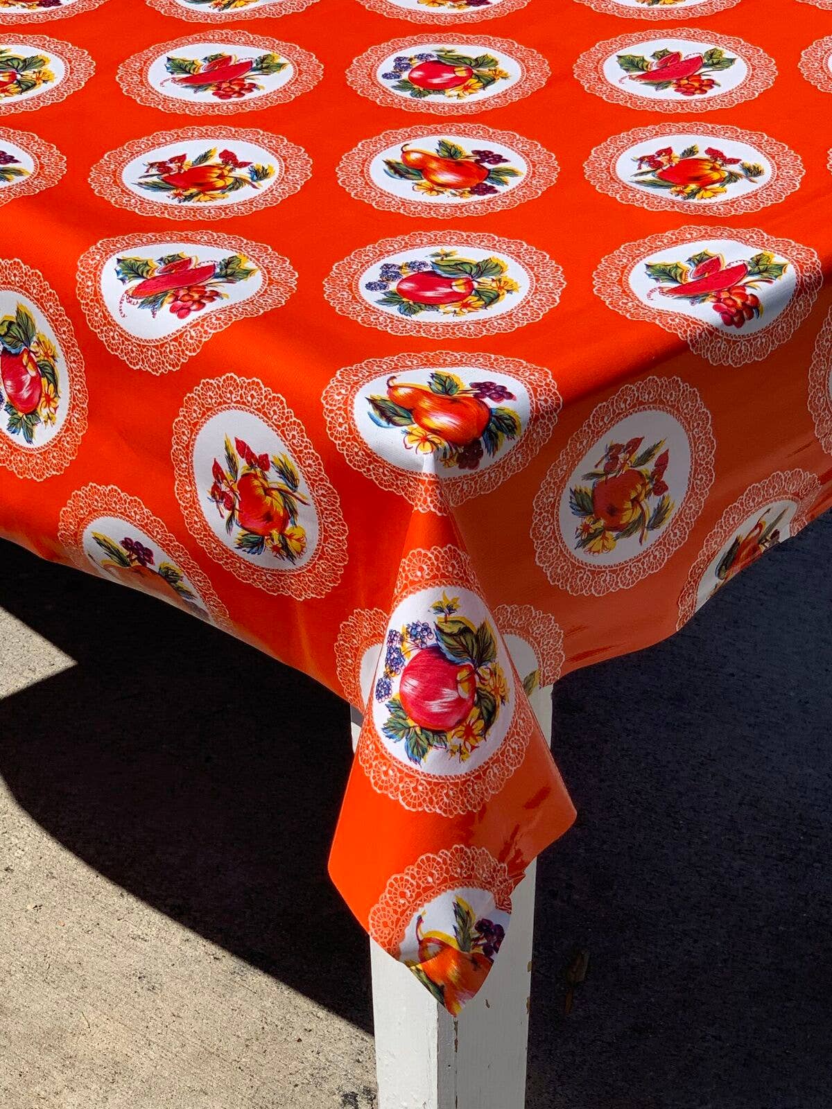 La toile cirée est le premier et le plus grand importateur de toile cirée du Mexique aux États-Unis. Commencé en 1995 par notre fondatrice qui a introduit commercialement la toile cirée aux États-Unis pour la première fois. C'était quelque chose qu'elle et ses amis adoraient en voyage et qui n'était tout simplement pas disponible en dehors du Mexique. Nous offrons un produit qui n'est pas dans les chaînes de magasins et qui s'intègre parfaitement dans les boutiques indépendantes spécialisées, les magasins de maison, d'artisanat, de jardin et de cuisine/gourmet. Notre toile cirée ressemble beaucoup à celle des années 1950, utilisée dans les foyers américains à travers le pays. En fait, certains de nos motifs datent de cette époque. Les tables de cuisine, d'artisanat, de pique-nique et utilitaires sont naturellement bien couvertes par la toile cirée. La surface lisse, brillante, facile à nettoyer et imperméable est un jeu d'enfant à essuyer et crée un succès décoratif coloré, abordable et pratique ! Principalement utilisées comme nappes, nous proposons cinq tailles rectangulaires et une petite ronde dans n'importe lequel de nos motifs. Les nappes peuvent être commandées dans le style populaire Simply Cut ou avec un bord Merrow/point de surjet en rouge.